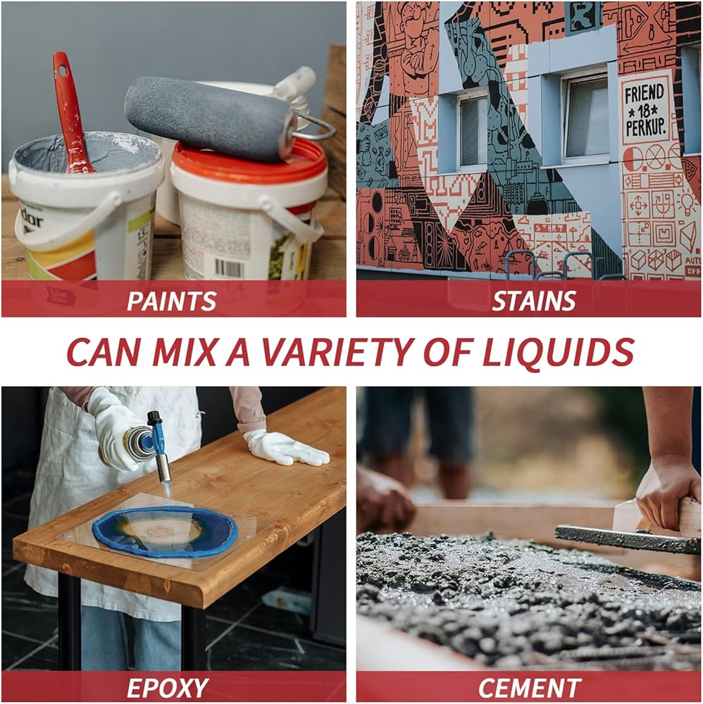 - مساعد مثالي لخلط الطلاء والبقع والإيبوكسي والجص والمزيد. يمكن استخدامه أيضًا في مشاريع الملاط الصغيرة. يُستخدم مع دلو أو علبة يصل حجمها إلى 5 جالون.
