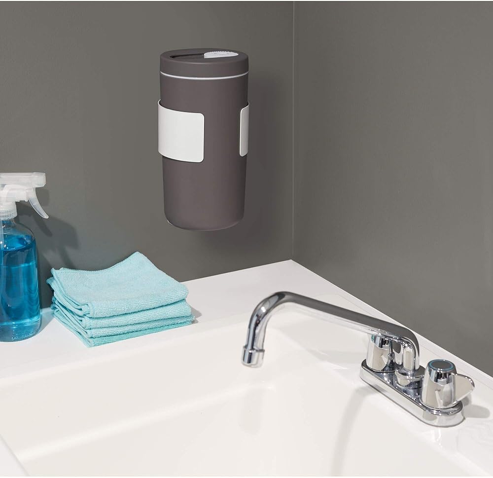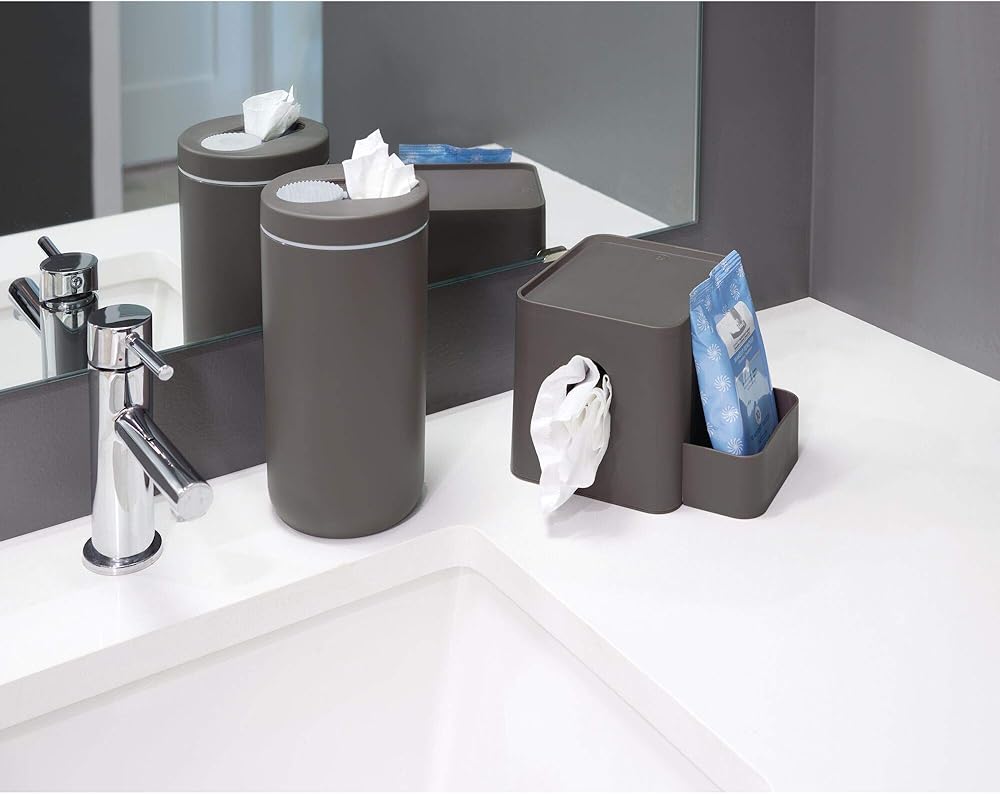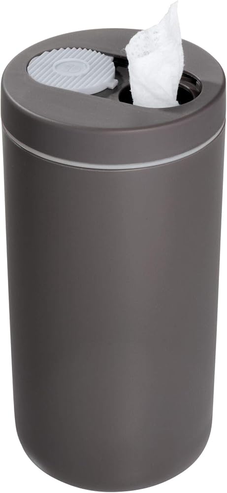 Store your cleaning wipes in style with the iD Clean Wipe Dispenser. This reusable storage container can be refilled with store-bought or homemade wipes, and it is great for use with any type of wipes, including antibacterial, disinfecting, baby, makeup remover, and more. The airtight lid keeps wipes fresh and moist to prevent them from drying out, while the open/close slider and pull-through dispenser provide quick and easy access. The modern design with sleek charcoal finish and gray accents provides a stylish alternative to branded packaging, and the durable BPA-free plastic construction is made to last and stands up to every day use. Measuring 4.5" x 4.5" x 8.85", this portable wipe holder is ideal for both at home and on-the-go use. With iDesign by InterDesign, you can #LiveSimply every day.