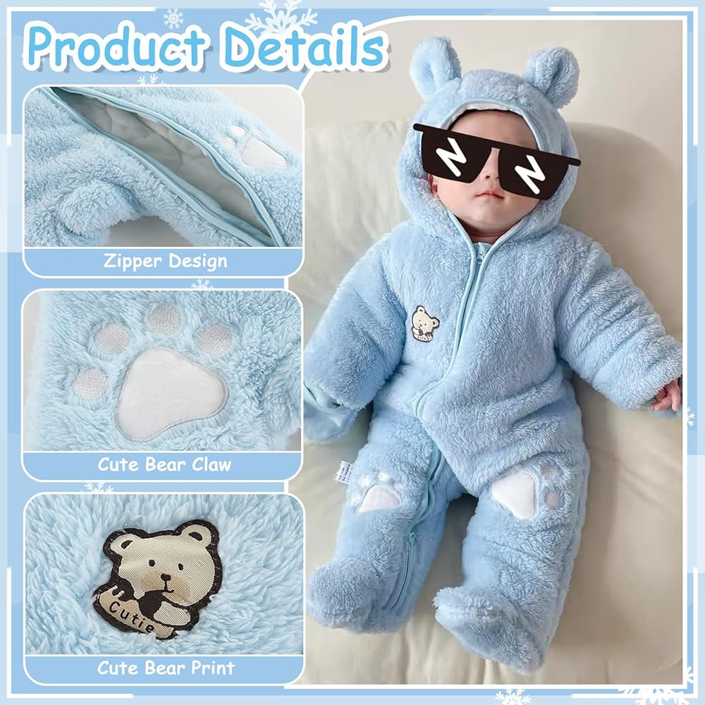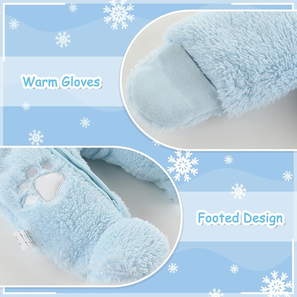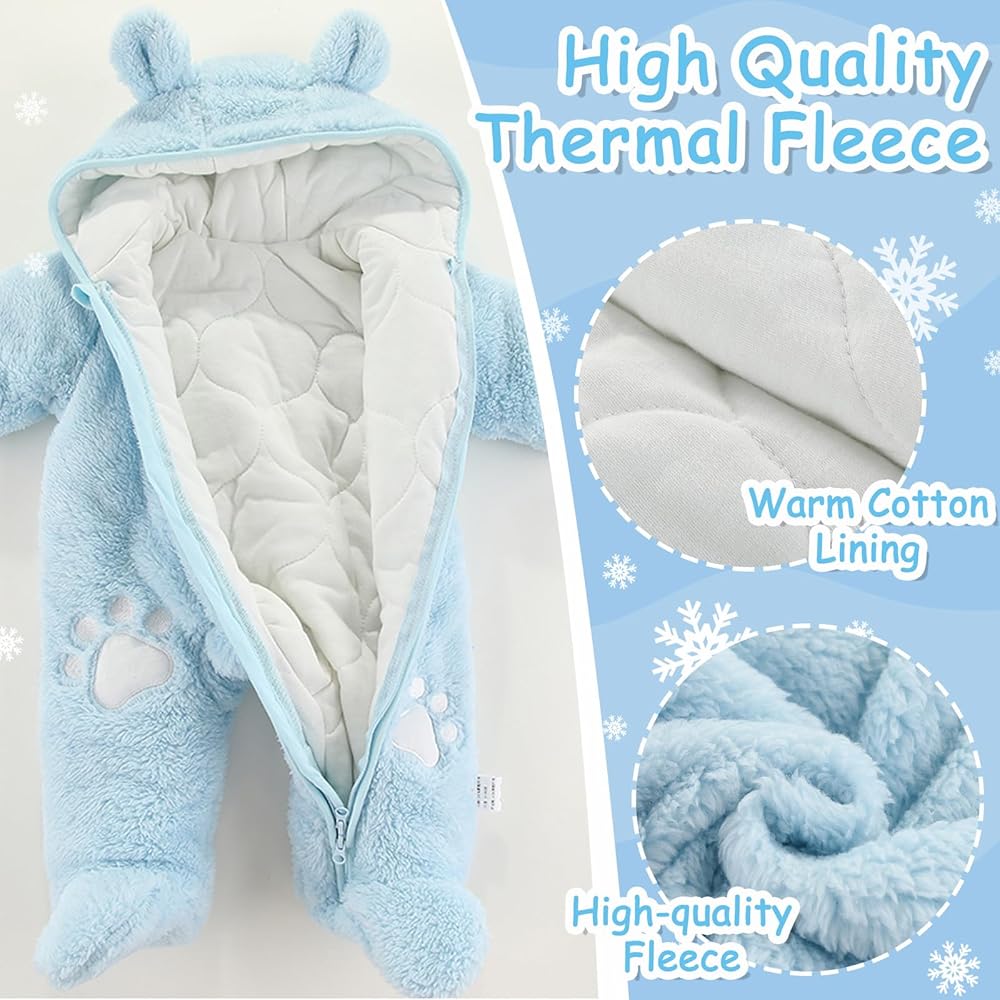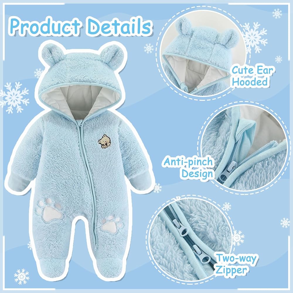 【دفء معزز】يوفر التصميم السميك لبدلة الثلج الرضع ذات القلنسوة المصنوعة من الصوف المكونة من قطعة واحدة دفء إضافي، مما يجعلها مثالية للطقس البارد أو الاستخدام الداخلي. سيبقى طفلك دافئًا ومريحًا أثناء استكشاف المناطق المحيطة به.