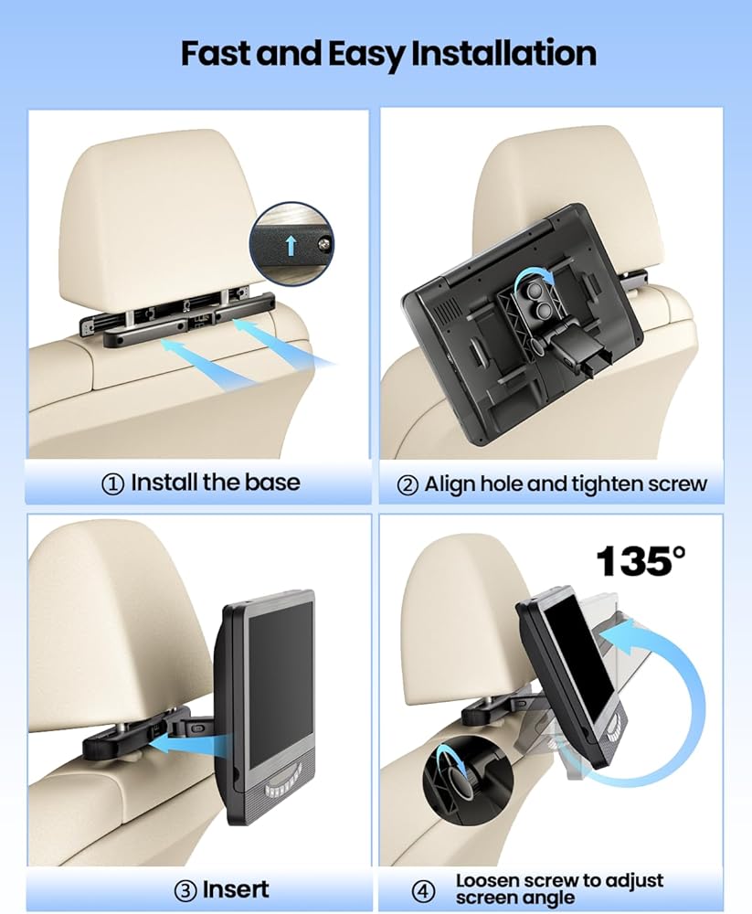 🚓【شاشة أكبر محدثة عالية الدقة مقاس 12.5 بوصة】تتميز بتقنية 1080P Full HD المحسنة، توفر لك مشغلات DVD المحمولة DESOBRY مقاس 12.5 بوصة جودة صورة أكثر وضوحًا من مشغل DVD مسند الرأس 720P الآخر. دعم تشغيل فيلمين مختلفين أو عرض نفس قرص DVD على كلا الشاشتين عبر توصيل كابل AV ببساطة. يأتي مع دعامتي تثبيت و6 أشرطة لمسند الرأس، خياران للتركيب.
