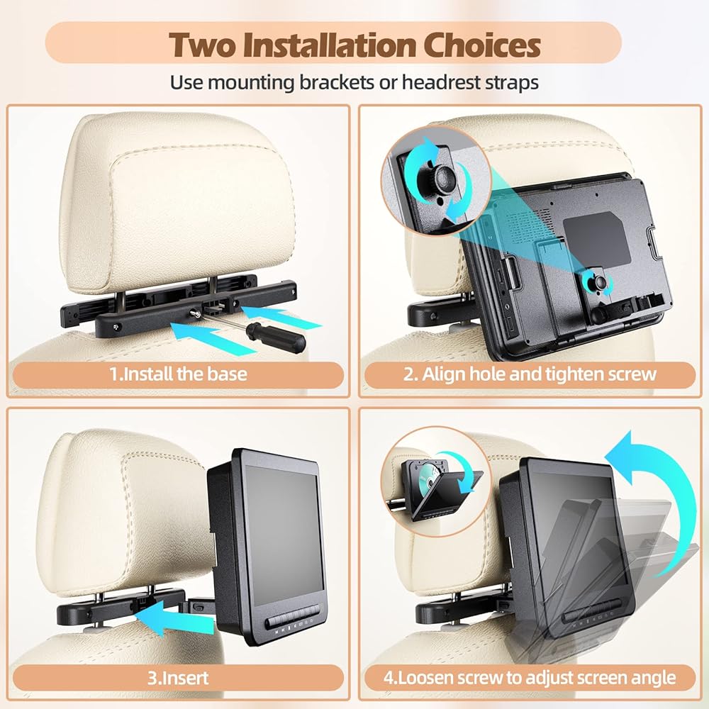 • 🚗【مكبرات صوت ستيريو مزدوجة وخيارين للتثبيت】مجهز بمكبري صوت استريو قويين، ومشغل DVD المحمول المزدوج للأطفال من DESOBRY يجعل مستوى الصوت أعلى وأكثر وضوحًا. كما أن مشغل DVD المحمول الخاص بالسيارة مزود بمقبس سماعة أذن مقاس 3.5 مم، ويمكنك استخدام سماعة الرأس الخاصة بك للحصول على صوت مركَّز وواضح. على عكس المنتجات الأخرى التي تأتي فقط مع مسند الرأس أو الأشرطة الثابتة، فلدينا كليهما!