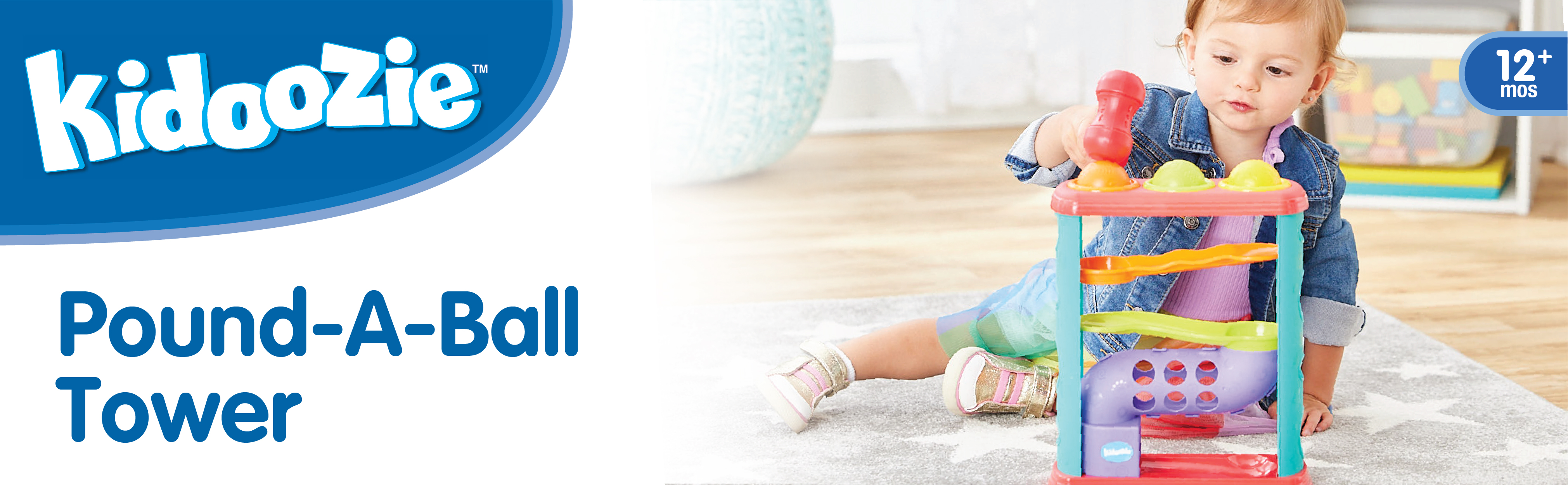 PRODUCT SPECIFICATIONS: Package contains 1 Pound-A-Ball Tower, 3 colorful balls and 1 hammer. Recommended for children 12 months and older.