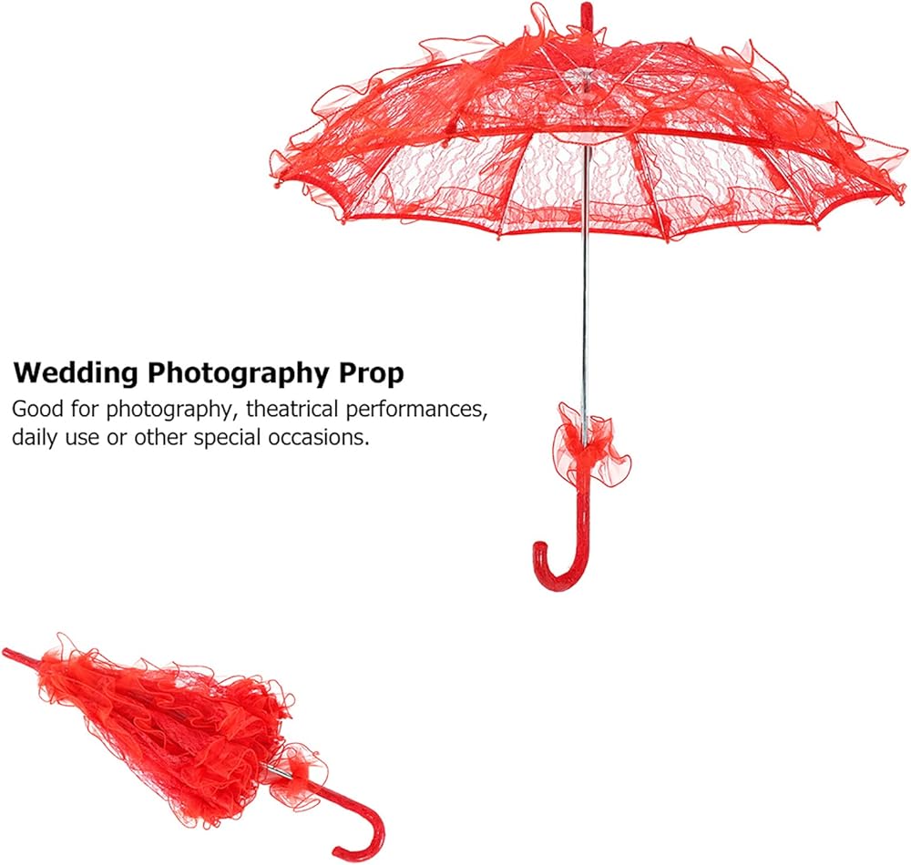 دعامة تصوير حفل زفاف، أنيقة وعصرية مقاس 19.73.92.4 بوصة لتزيين الاحتفالات ومظلة من الدانتيل ومظلة زفاف، لكشك الصور (أحمر)