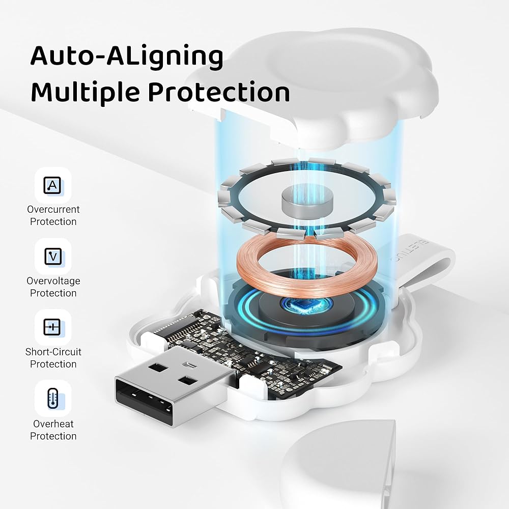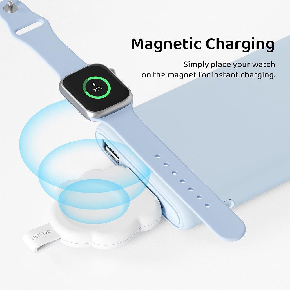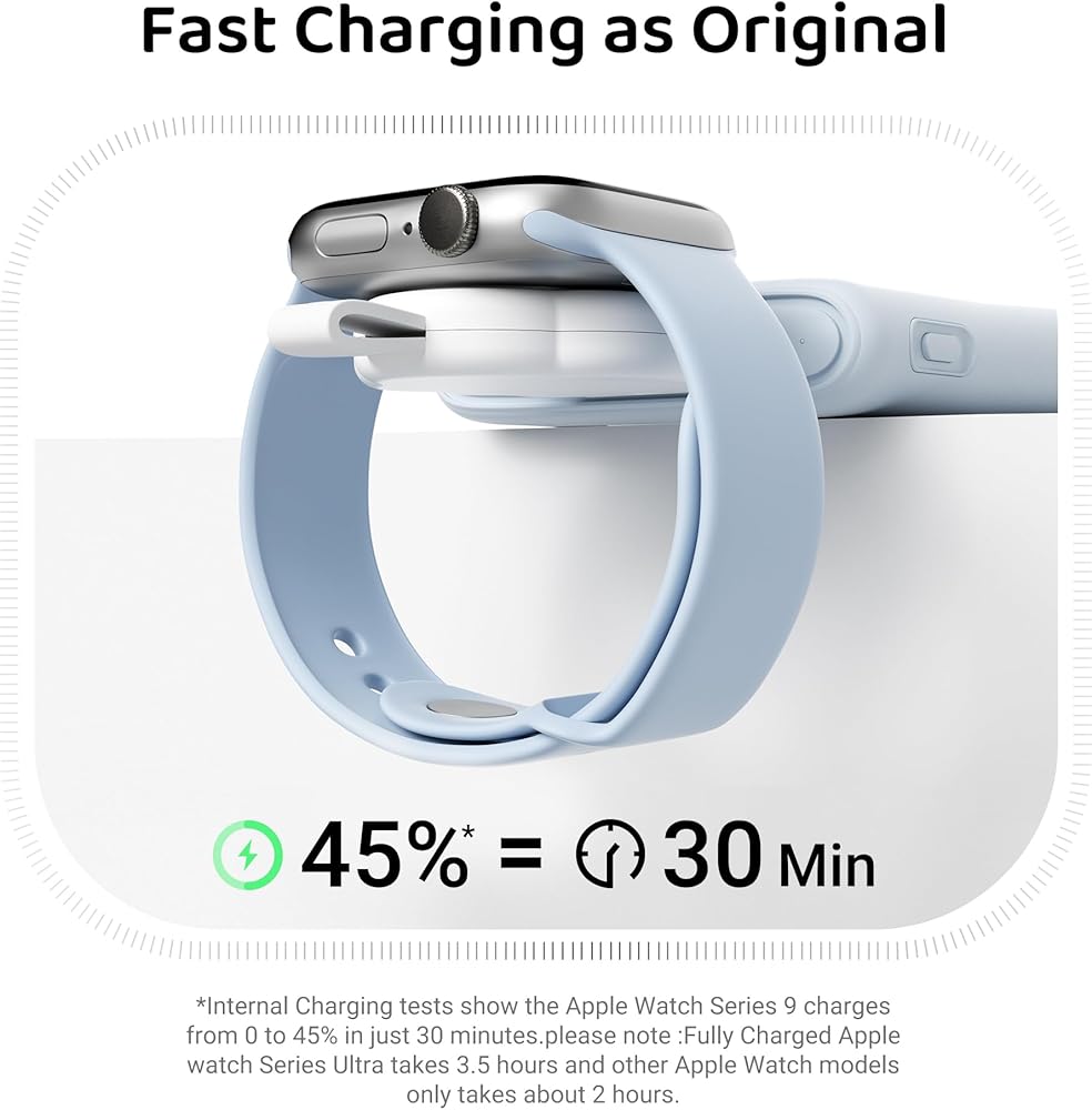 Built with over-current,over-voltage,short circuit,and over-temperature protection,this charger guarantees a safe charging environment for iWatch and the device.Charge with confidence knowing your watch is protected from potential damage.The powerful magnetic adsorption ensures your watch aligns perfectly and charges securely upon contact,minimizing any risk of sliding or disconnecting.