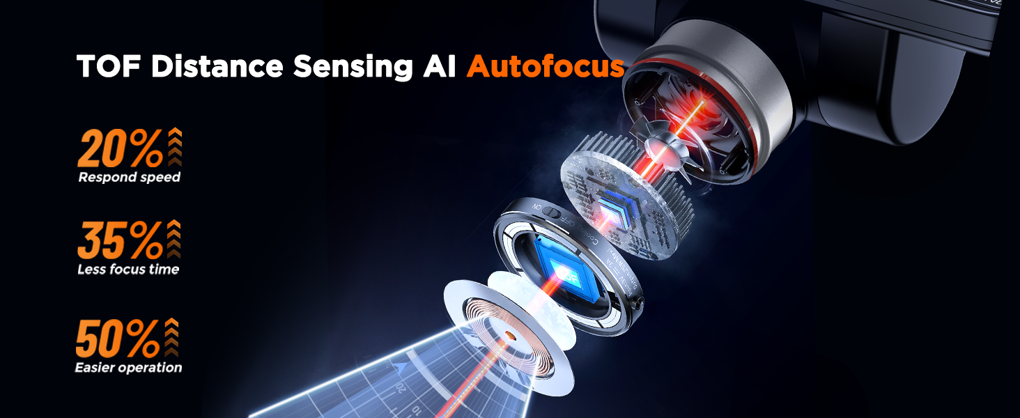 مستشعر TOF سريع الاستجابة: يتميز المجهر EM4K-AF بمستشعر TOF متقدم لقياسات المسافة الدقيقة والتعديلات البؤرية السريعة في ثانيتين فقط. إنه يتفوق في ظروف الإضاءة المختلفة، مما يوفر تنوعًا للعينات والبيئات المختلفة