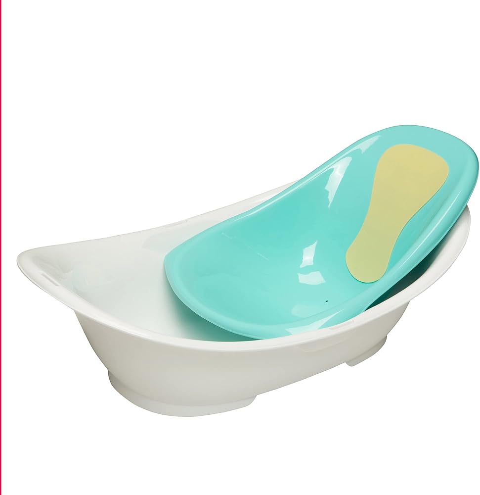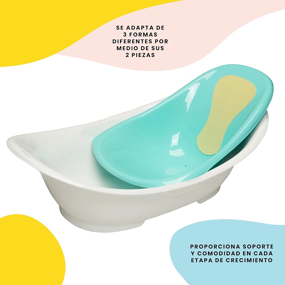The Custom Care 3 Stage Bath Center by Safety 1st is a sleekly designed baby bath tub that offers the flexibility to adapt and grow with a young family through 3 stages, from newborn to baby to toddler. This first truly modular bathing system provides custom support and comfort at every stage of growth. Its unique flexibility makes bath time a nurturing and relaxing time for you and baby.This tub provides optimal back and head support to infants and encourages a closer emotional connection during bath time between parent and child. It helps keep an often wiggly and wobbly baby both stable and in the optimal bathing position. Later, as a toddler tub, the contoured backrest and seat supports a toddler. This allows them to sit up unassisted, making bath time easier and more fun for everyone.