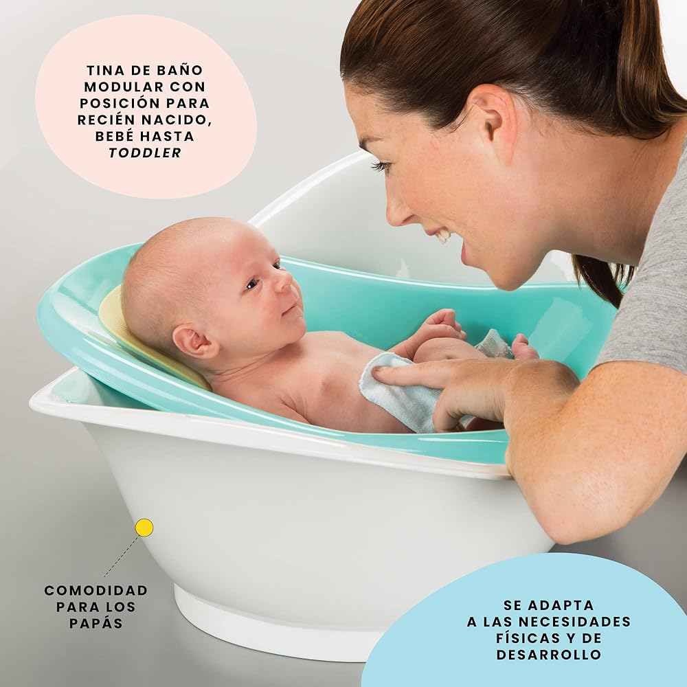Modular 3-position baby bath matches your child's physical and developmental needs
