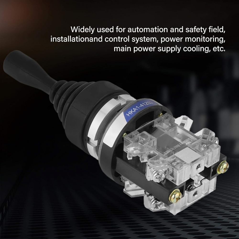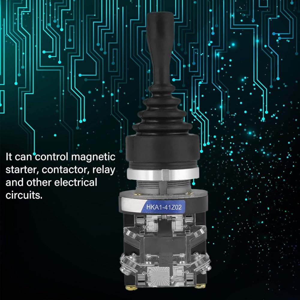Feature: The joystick switch is a momentary switch that has 2 normally open contacts. The stick will return to its original position once released. Rubber sleeve cover on stick is resistant to water, oil and dust. It can control magnetic starter, contactor, relay and other electrical circuits. Widely used for automation and safety field, installation and control system, power monitoring, main power supply cooling, etc. Spec: Model: HKA1-41Z02 Type: 2-position momentary Contact: 2NO Voltage and Current: AC380V 5A Angle: ±30 degree Electrical Life: 1 million times Mechanical Life: 1 million times Mounting Hole Diameter: 30mm Size: 154.8cm/5.911.89in Weight: 202g(approx.) Package Includes: 1 x Switch