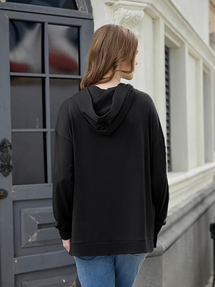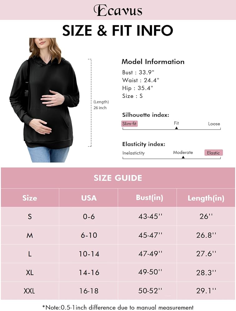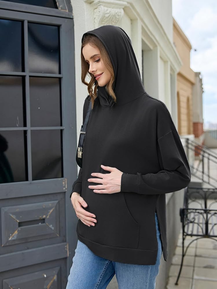 مجموعة متنوعة من المطابقة: مثالي للارتداء أثناء الحمل. تعتبر السترة ذات القلنسوة طويلة الأكمام الخاصة بنا قطعة أزياء يجب اقتناؤها من أجل OOTD. يبدو رائعًا مع الجينز أو السراويل الضيقة أو السراويل القصيرة لراكبي الدراجات للارتداء اليومي