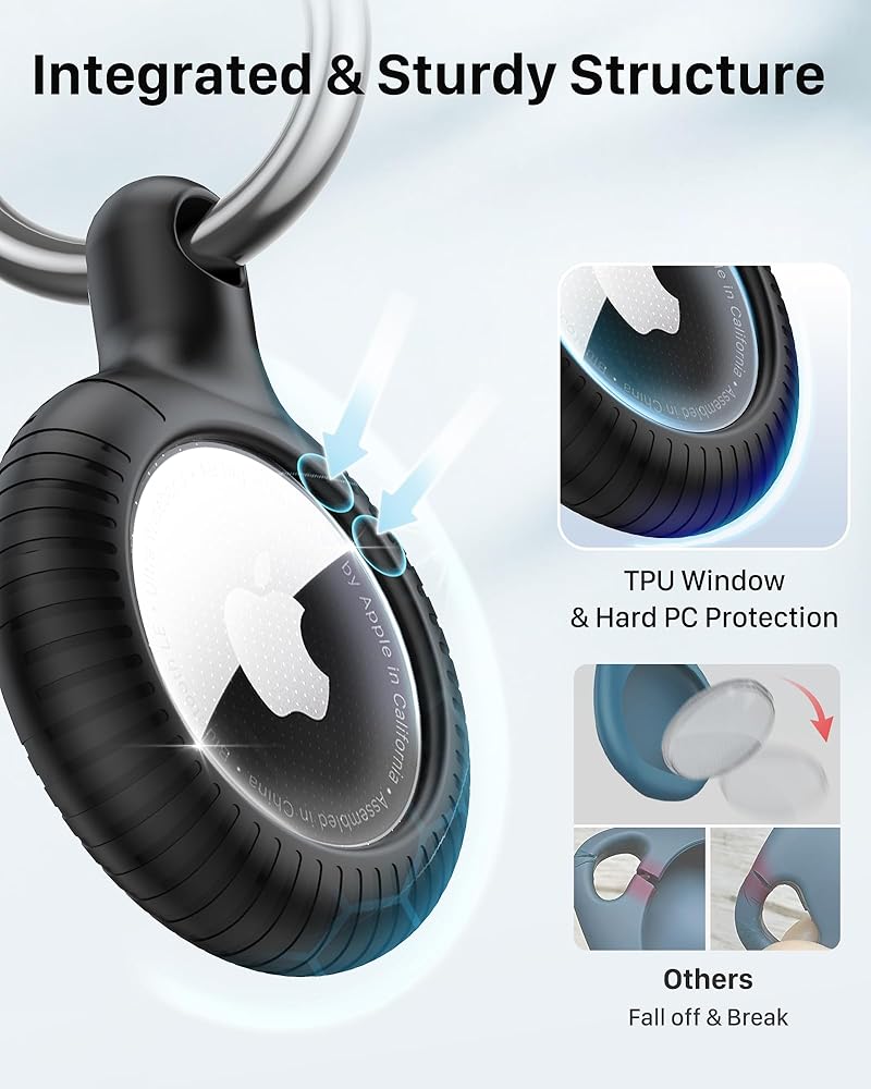 [تصميم نافذة شفاف متكامل] تم دمج حافظة بطاقة هوائية صلبة من البولي كربونات ونافذة شفافة من مادة TPU بسلاسة، مما يجعل التثبيت أكثر ملاءمة ويوفر مقاومة للماء. تمنع النافذة الشفافة الخدوش، وتوفر حماية أفضل لجهاز Airtag الخاص بك. على عكس التصميمات غير المتكاملة، لن تسقط النافذة الشفافة، مما يضمن بقاء Airtag الخاص بك محميًا.