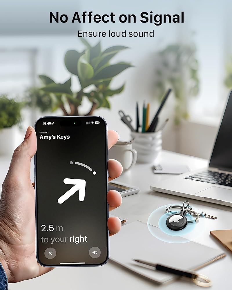 [إشارة غير منقطعة] لا يتداخل حامل سلسلة المفاتيح Airtag مع إشارة البلوتوث أو تشغيل الصوت. يمكنك استخدام Airtag بسلاسة مع تطبيق Find My من Apple لتحديد موقع العناصر الخاصة بك.