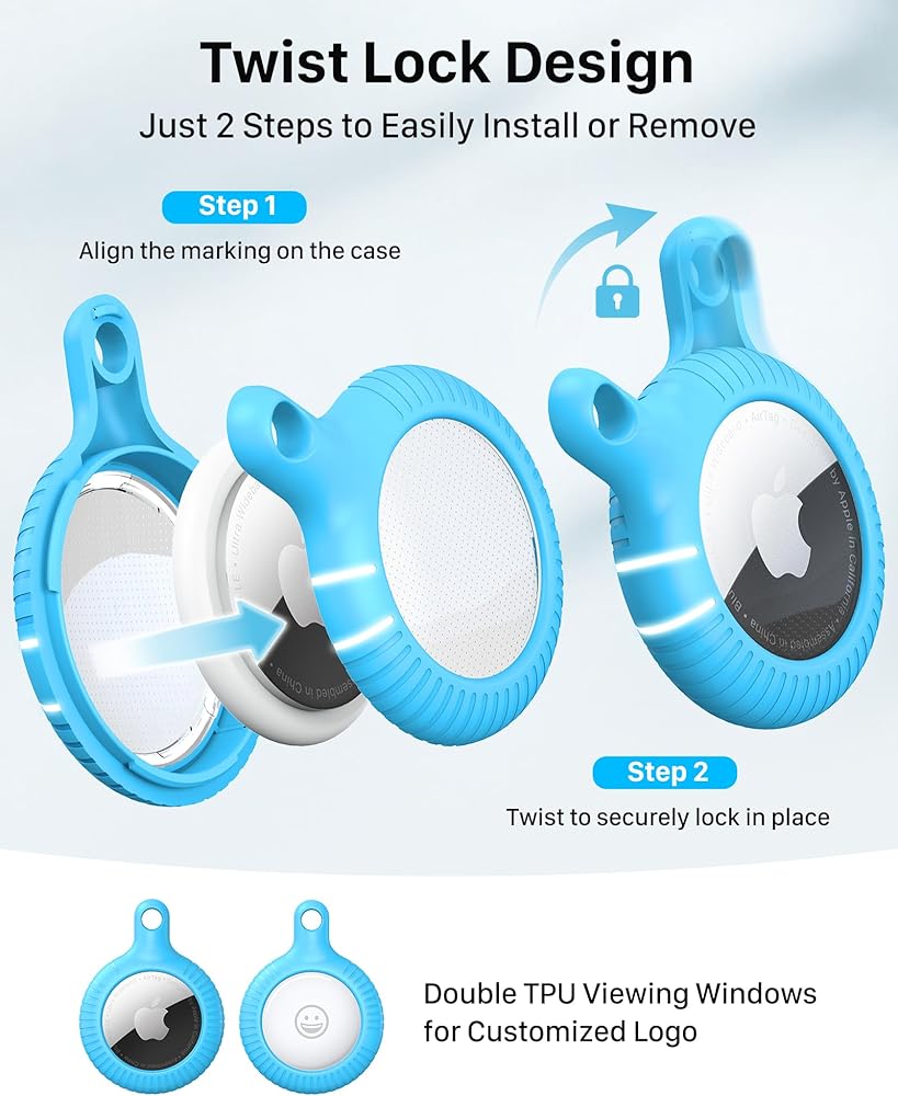 [تصميم قفل ملتوي] لا مزيد من التمدد أو الضغط كما هو الحال مع حافظات السيليكون. تجربة عملية التثبيت السهلة. ما عليك سوى المحاذاة واللف لقفل Airtag الخاص بك في مكانه بشكل آمن. بالإضافة إلى سلسلة المفاتيح المعدنية الزنبركية، فإنها توفر أمانًا إضافيًا، لذلك لا داعي للقلق أبدًا بشأن سقوط بطاقة Airtag الخاصة بك.