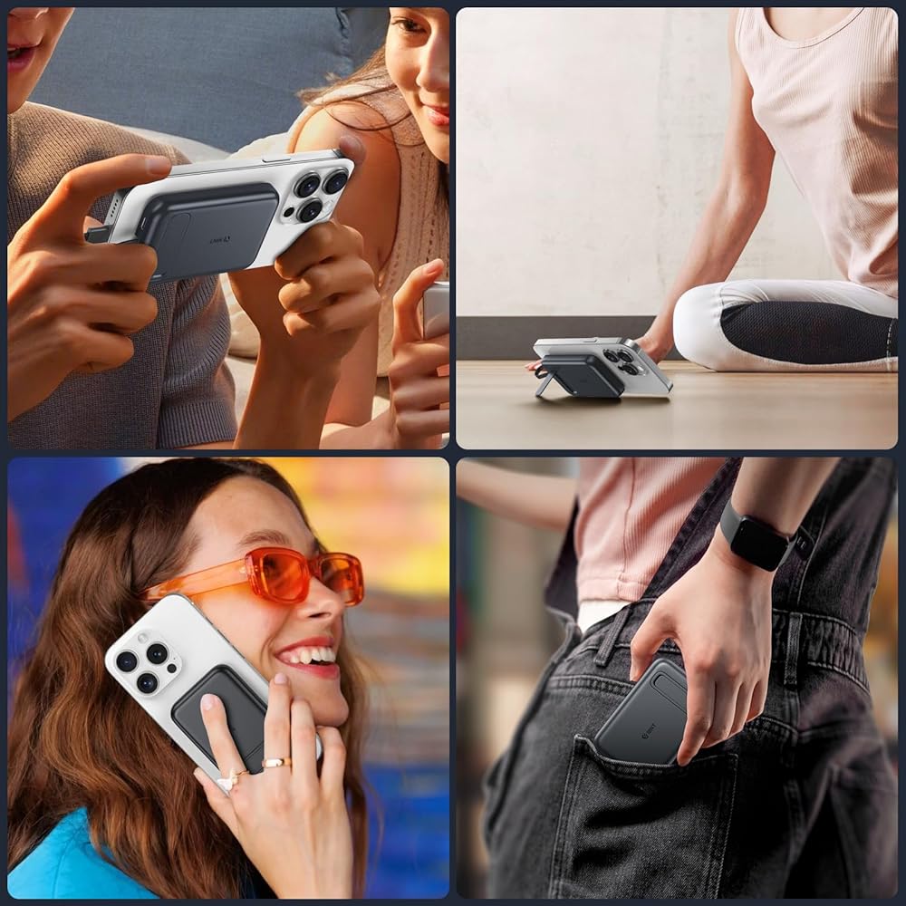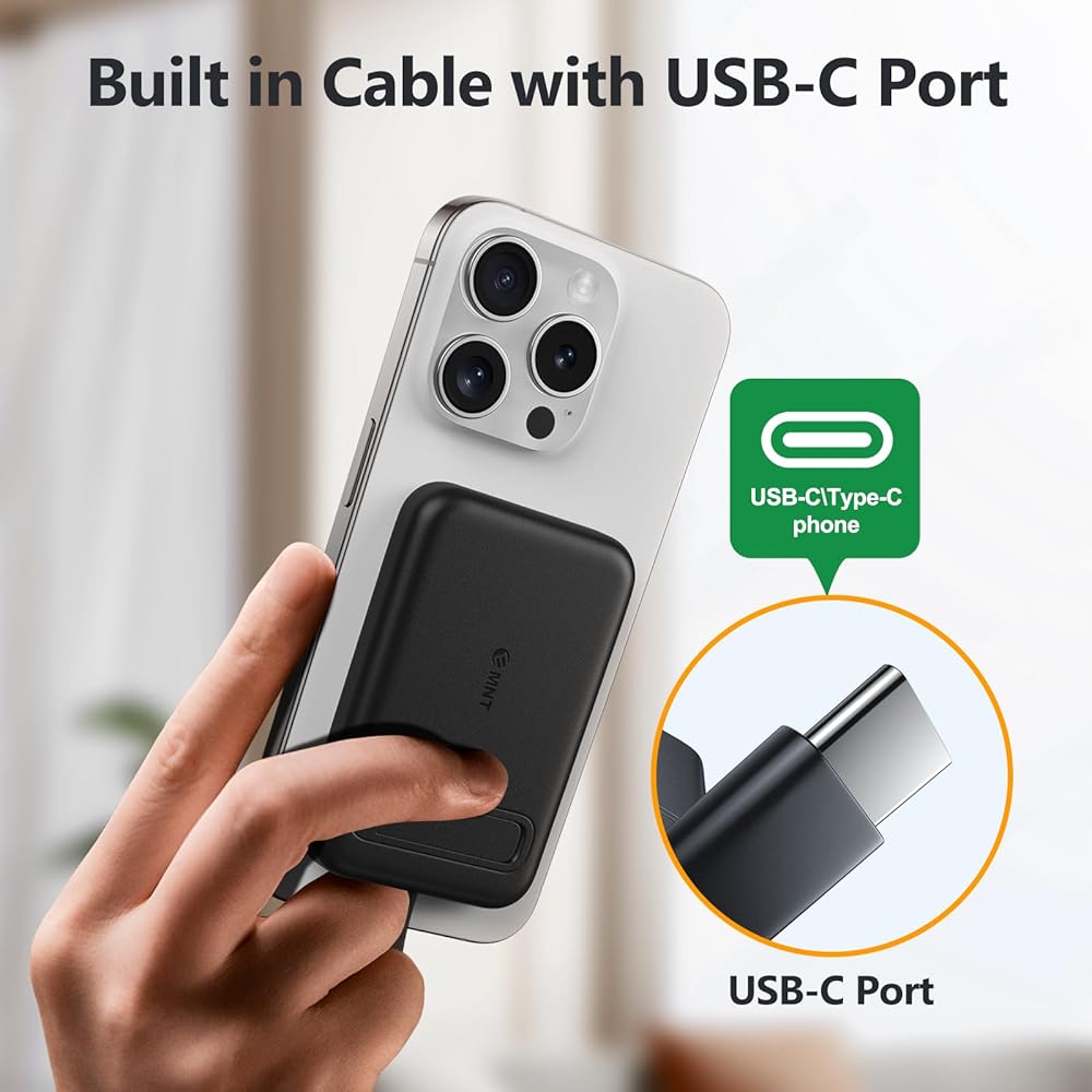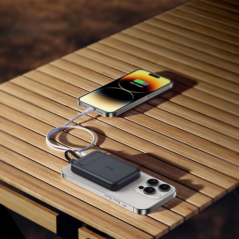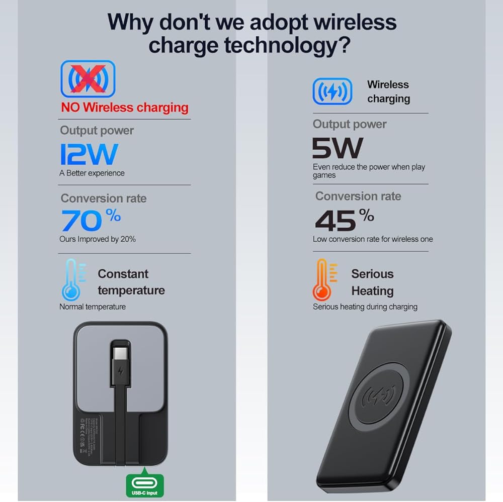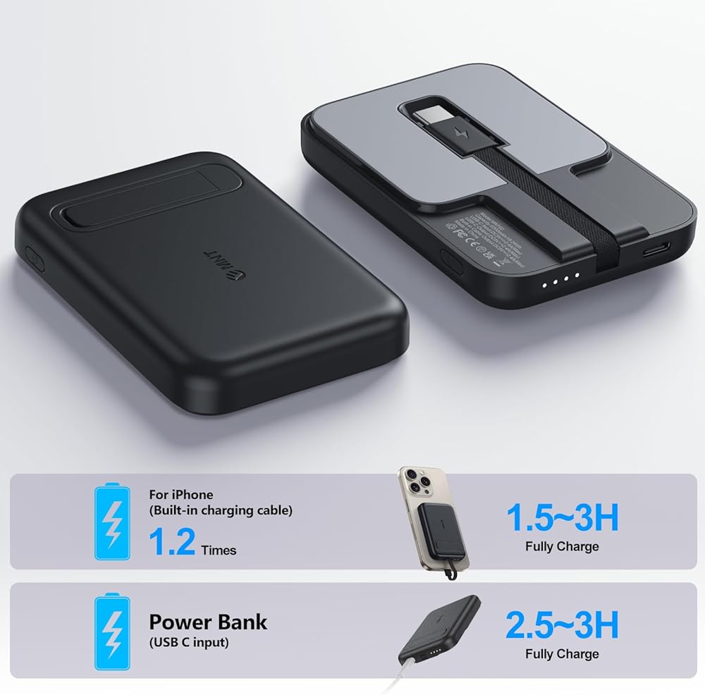 وظيفة المغناطيس والشحن غير اللاسلكي: يحتوي بنك الطاقة المحمول على مغناطيس مدمج (لا يدعم وظيفة الشحن اللاسلكي) وله وظيفة الشفط المغناطيسي. يأتي المنتج مع حلقة حديدية يمكن لصقها على الجزء الخارجي للهاتف المحمول أو علبة الهاتف المحمول