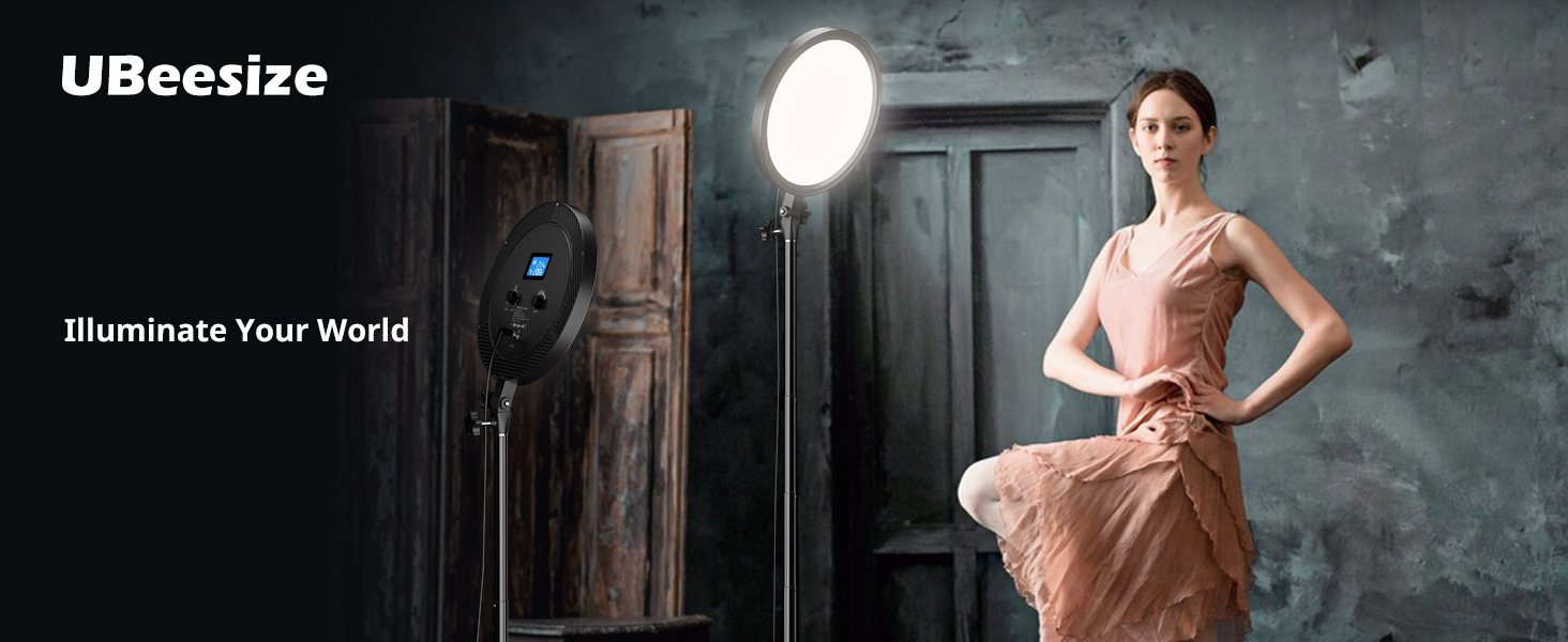 • تقنية انبعاث الحافة: يستخدم الضوء الدائري ذو الشاشة الكاملة UBeesize تقنية انبعاث الحافة لإنشاء إضاءة ناعمة ومتساوية تعزز بشكل جميل ملامح الوجه وملمس البشرة مع تقليل الوهج بشكل فعال.