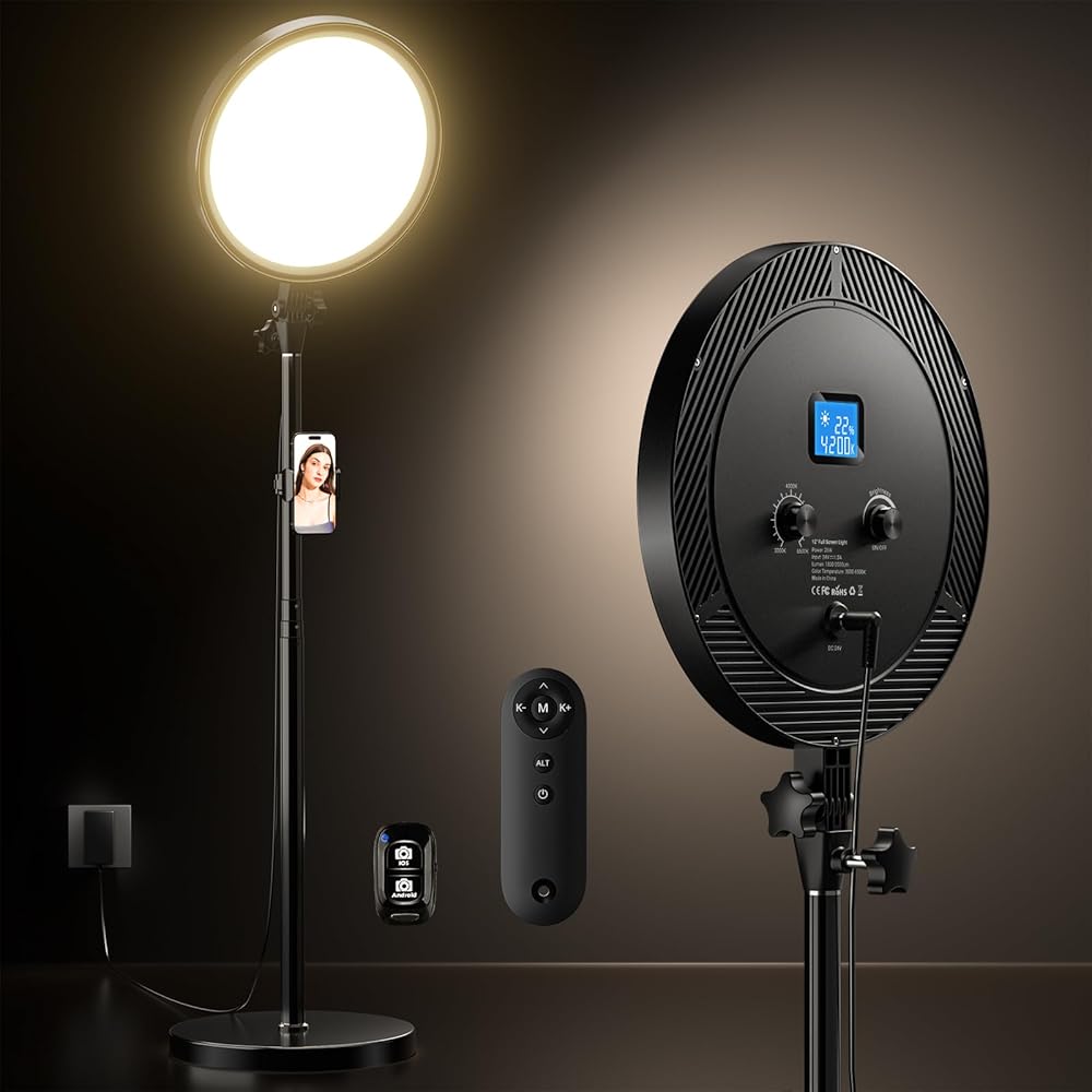 • 【محول تيار مستمر】يتم تشغيل الضوء الدائري الكبير بواسطة محول تيار مستمر، مما يوفر مصدر طاقة ثابت مع سطوع يعادل سطوع الضوء الدائري مقاس 18 بوصة. يضمن هذا التصميم سطوعًا ثابتًا مع إطالة عمر الضوء بشكل فعال. بالإضافة إلى ذلك، تعمل مصادر الإضاءة ومصابيح LED غير المتدرجة على تعزيز كفاءة استخدام الطاقة.