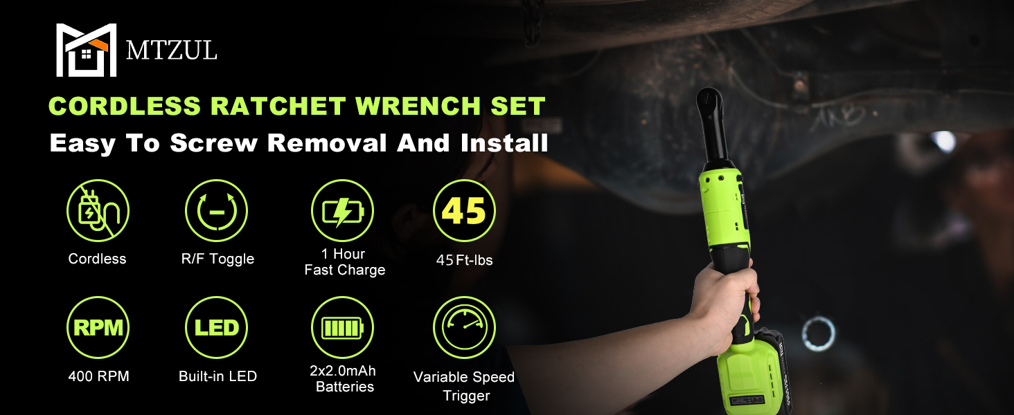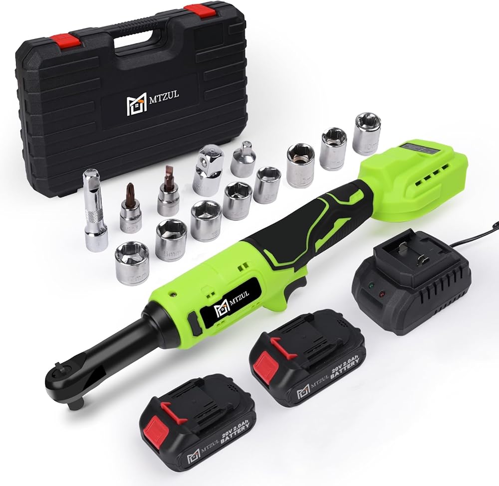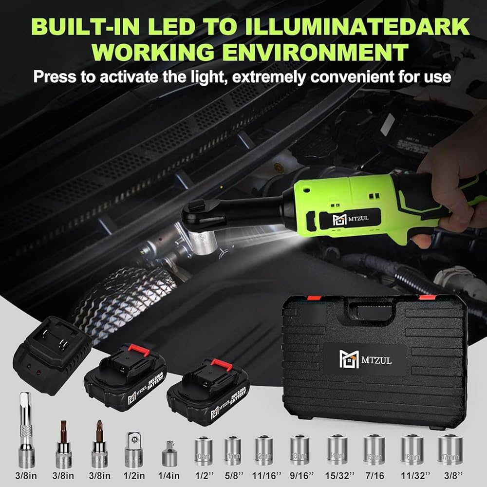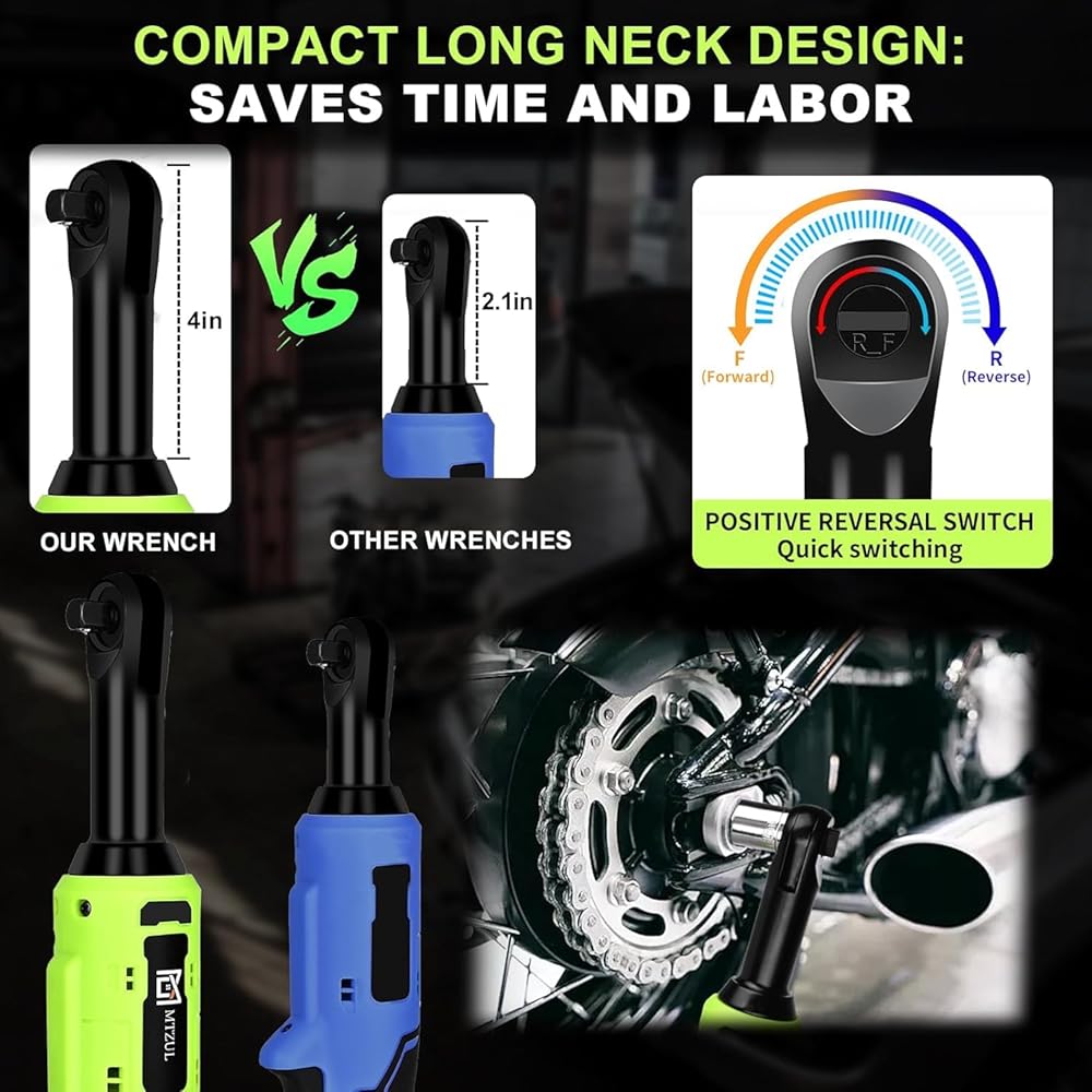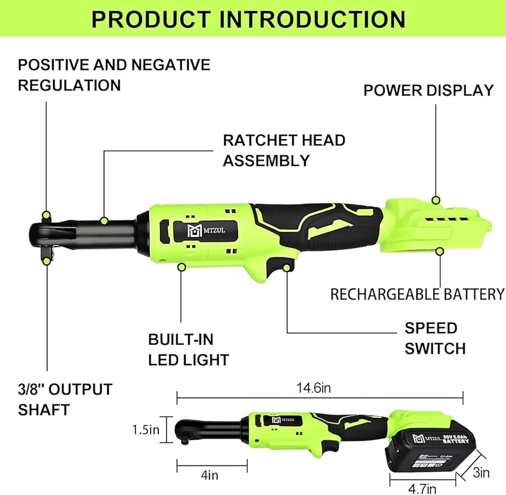 【تصميم مريح】تتميز مجموعة السقاطة اللاسلكية الممتدة بين الأدوات الكهربائية، مما يوفر التوازن المثالي بين القوة والقدرة على المناورة. يضمن المقبض المطلي بالمطاط Power Ratchet التشغيل المريح بيد واحدة، مما يقلل من التعب. مفتاح السقاطة الكهربائي الممتد هو مفتاح متغير السرعة يضبط السرعة. يتميز مفتاح السقاطة المحمول بمصباح LED للعمل في الظلام