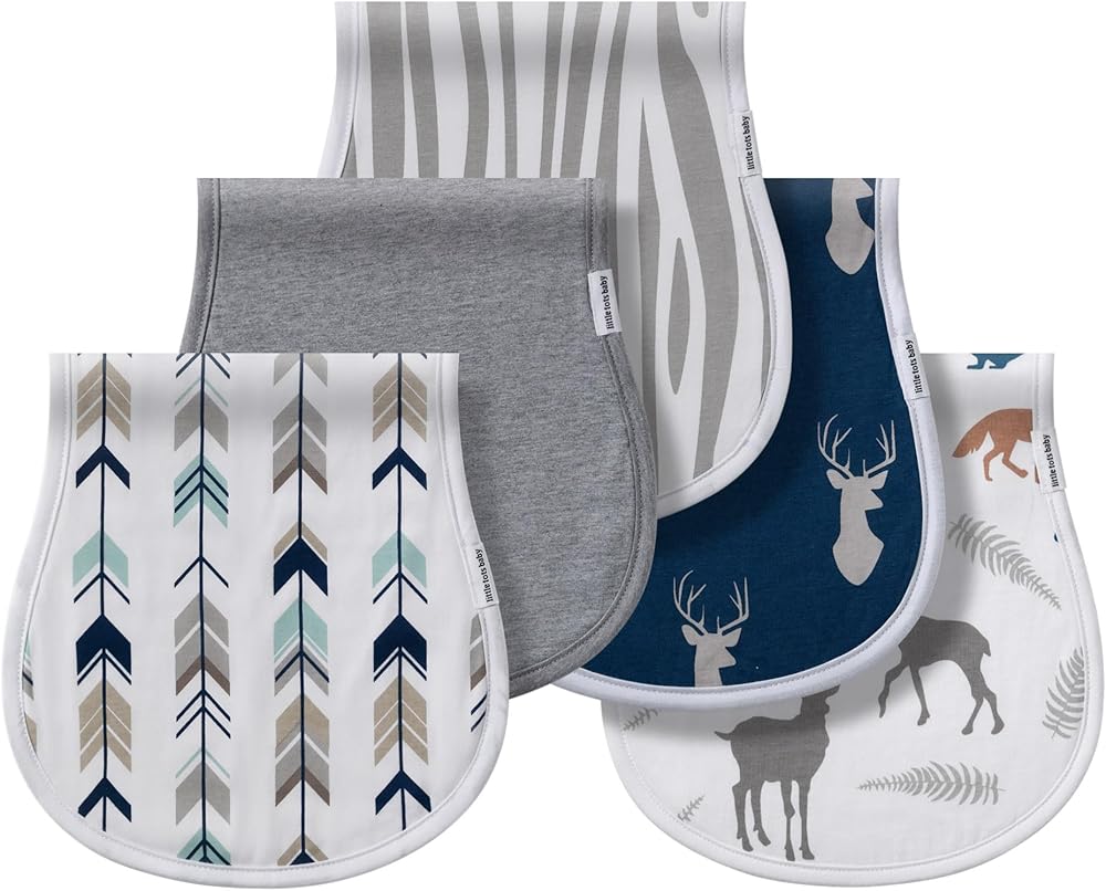 مجموعة ملابس تجشؤ الأطفال، منشفة لحديثي الولادة من قماش التجشؤ لحديثي الولادة والأولاد والبنات، عبوة من 5 قطع مصنوعة من القطن بنسبة 100% (الأيائل والسهم)