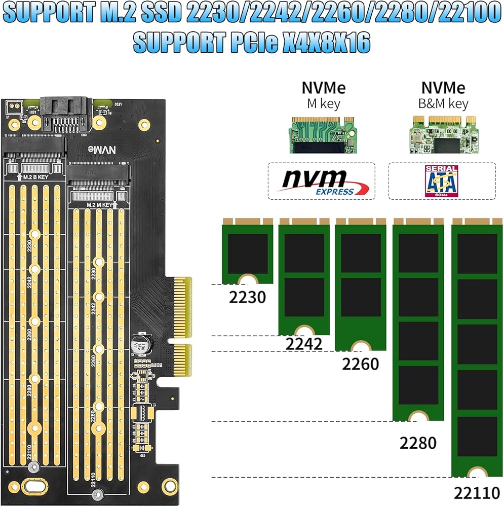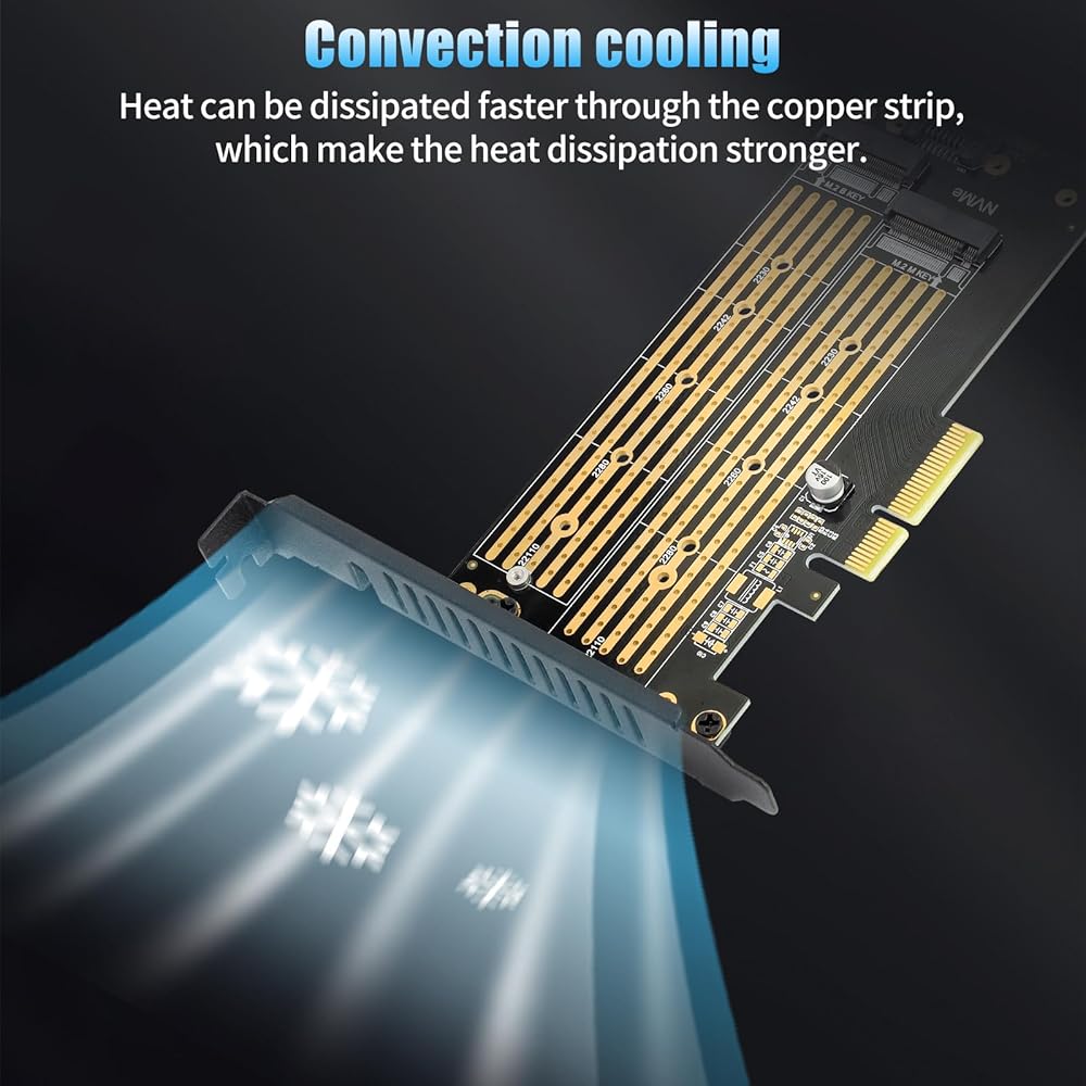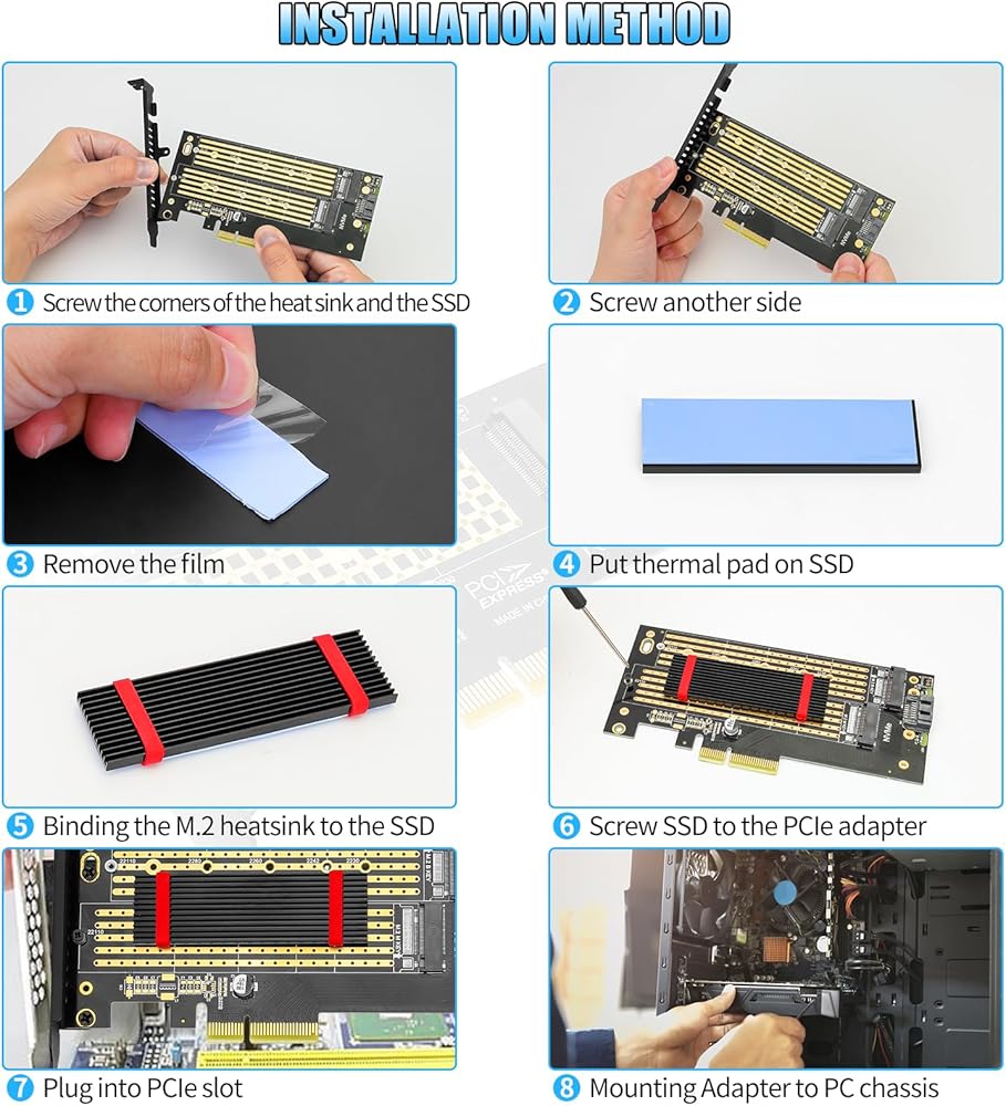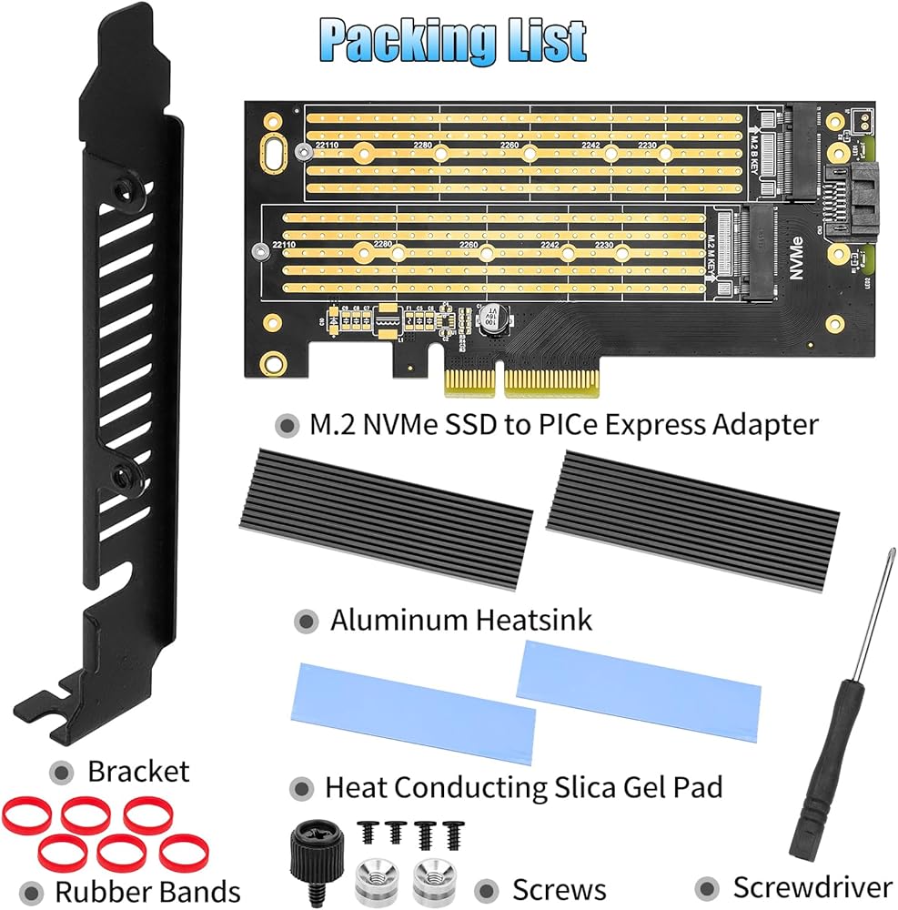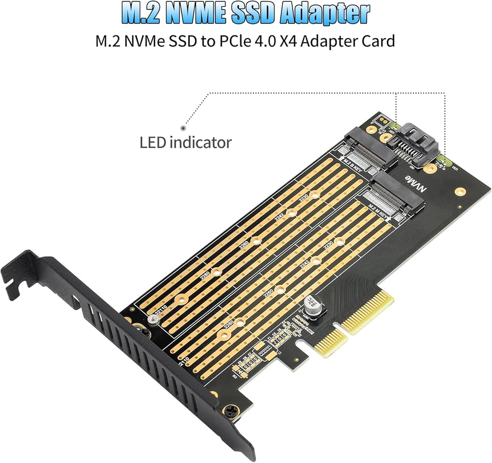 【محول الدعم 】-دعم فتحة PCIe X4/X8/X16 على اللوحة الأم. يرجى عدم تثبيت بطاقة المحول في فتحة PCI. قد يؤدي تثبيته في الفتحة الخاطئة إلى حرق بطاقة المحول، ومحرك الأقراص الثابتة،