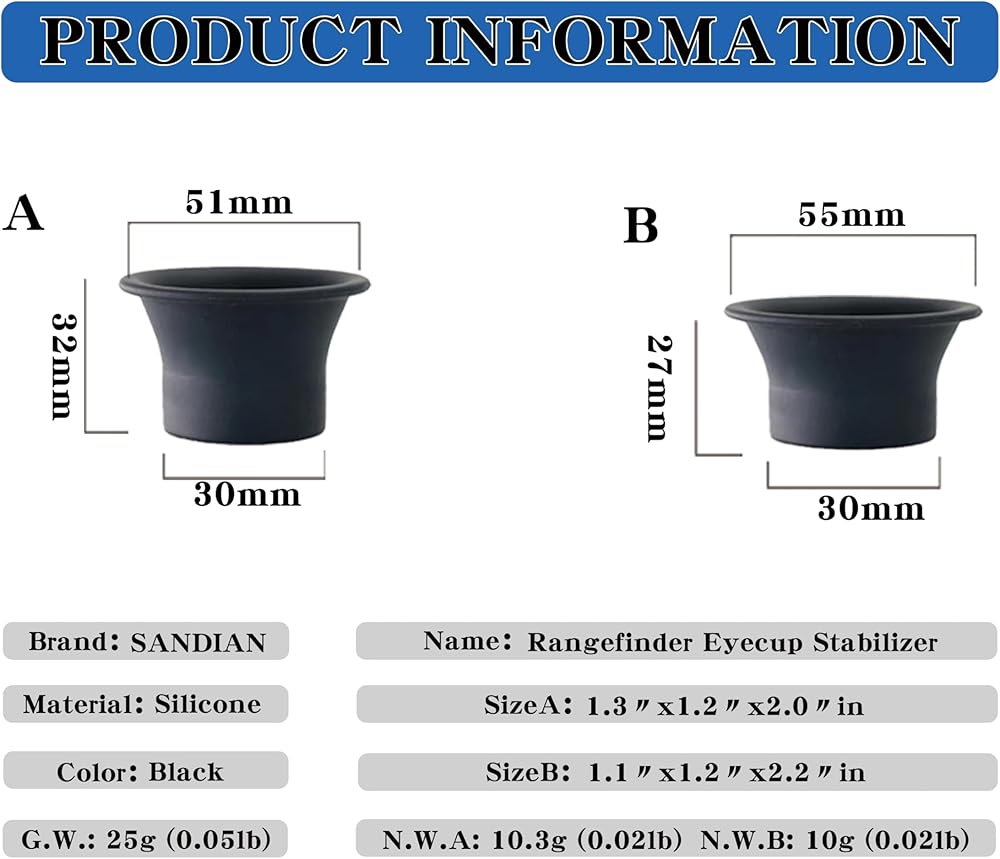 [WHAT'S IN THE BOX] SANDIAN Rangefinder Eyecup Stabilizer package Includes 2 different sizes of Eyecup for rangefinder protection and anti-shake for precise distance measurement.