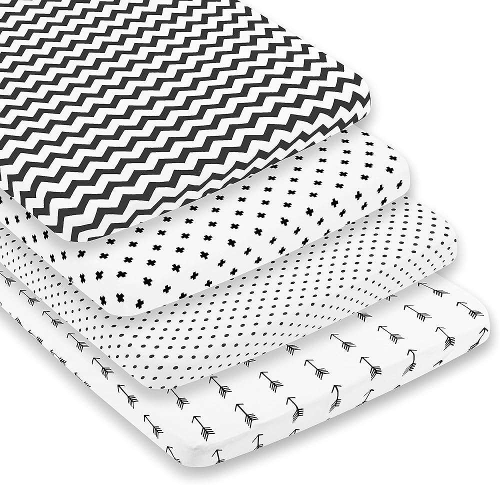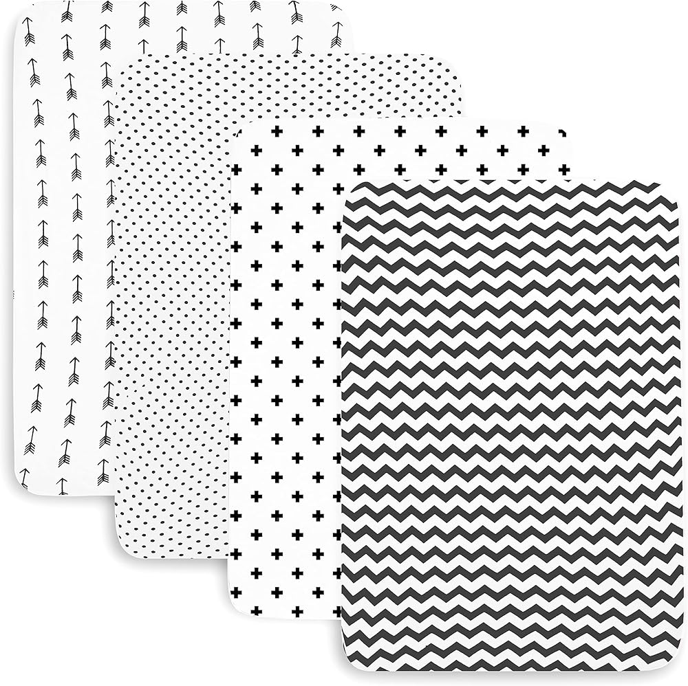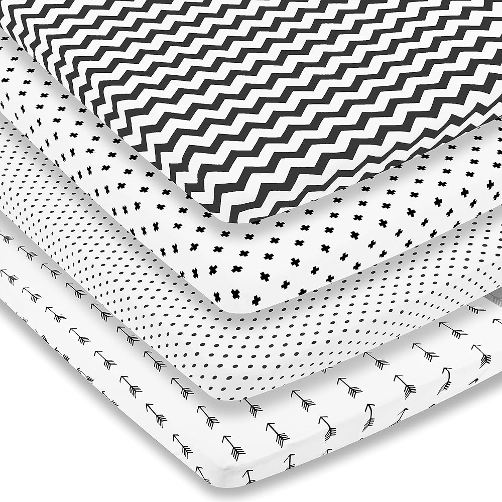 ملاءات Pack n Play - ملاءات العبوة واللعب 4 عبوات - ملاءات مرتبة من القطن المنسوج فائق النعومة بنسبة 100% - ملاءة لعب محمولة - ملاءات سرير صغيرة مناسبة للأولاد والبنات (24 × 38 × 5)