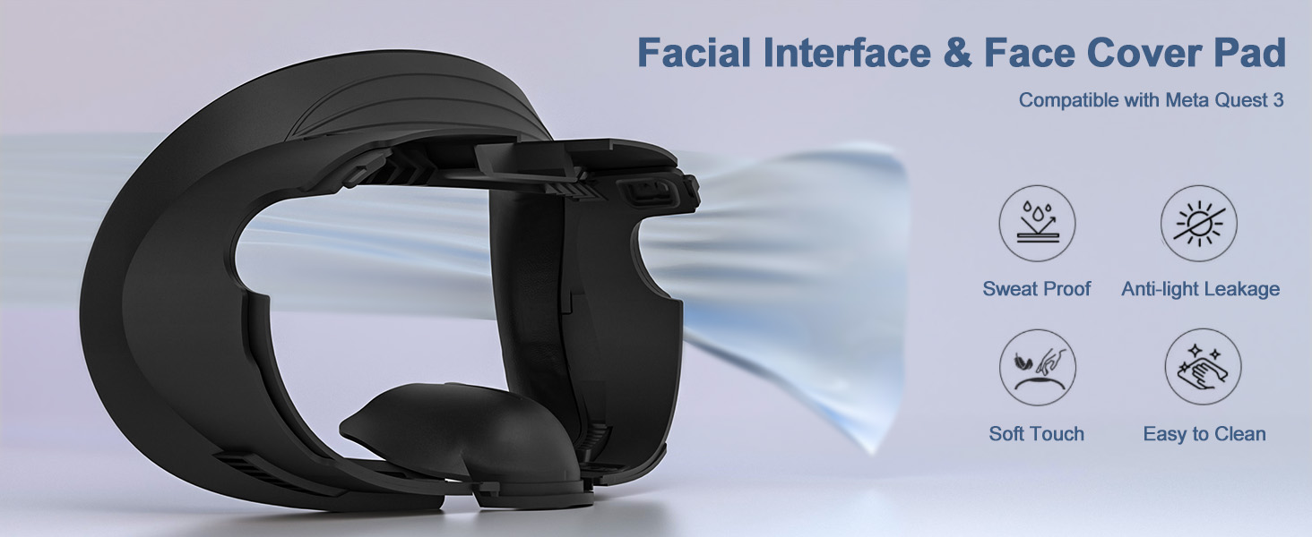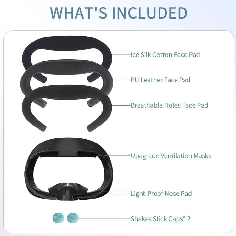 تشتمل على ثلاثة أنواع من وسادات الوجه - وسادة وجه من القماش الشبكي مقاس 0.78 بوصة: متوافقة مع وسادة الوجه oculus Quest 3 للياقة الواقع الافتراضي، والتي تم تصميمها باستخدام إسفنجة وشبكة ماصة خاصة، تمتص العرق وأكثر مسامية، لا داعي للقلق بشأن البخار بعد الآن