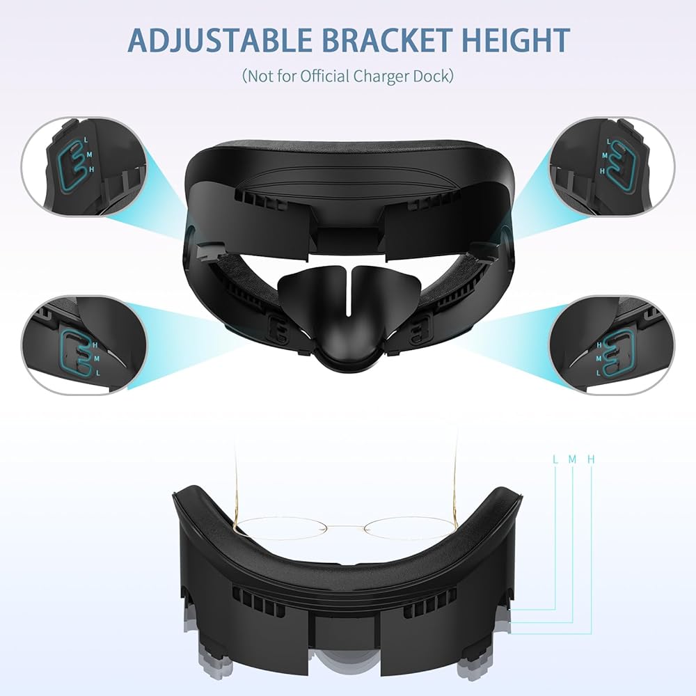 هيكل تهوية مطور وقابل للتعديل: تم تصميم دعامة واجهة الوجه VR المتوافقة مع Meta Quest 3 بقنوات هواء فريدة من نوعها، مما يسمح بتأثير تدفق الهواء من النوع الحراري مما يمنع العدسات الضبابية أو ارتفاع درجة الحرارة، وثلاثة خيارات لعمق واجهة الوجه لـ Quest 3: عالي (H)، ومتوسطة (M)، ومنخفضة (L)، (وضعية H: عيناك أبعد ما تكون عن العدسة)-- أكثر ملاءمة للأشخاص الذين يرتدون النظارات.