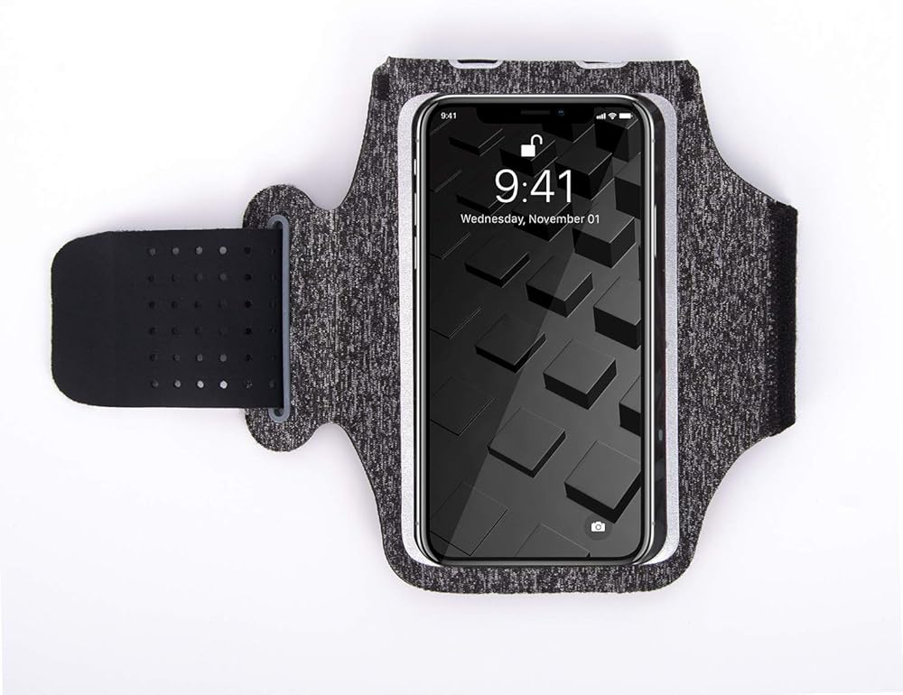 Kusport Running Armband, Cell Phone Armband Holder for Walking, Gym, Workout, Men, Women, with Adjustable Straps and Zipper Pocket (Gray)