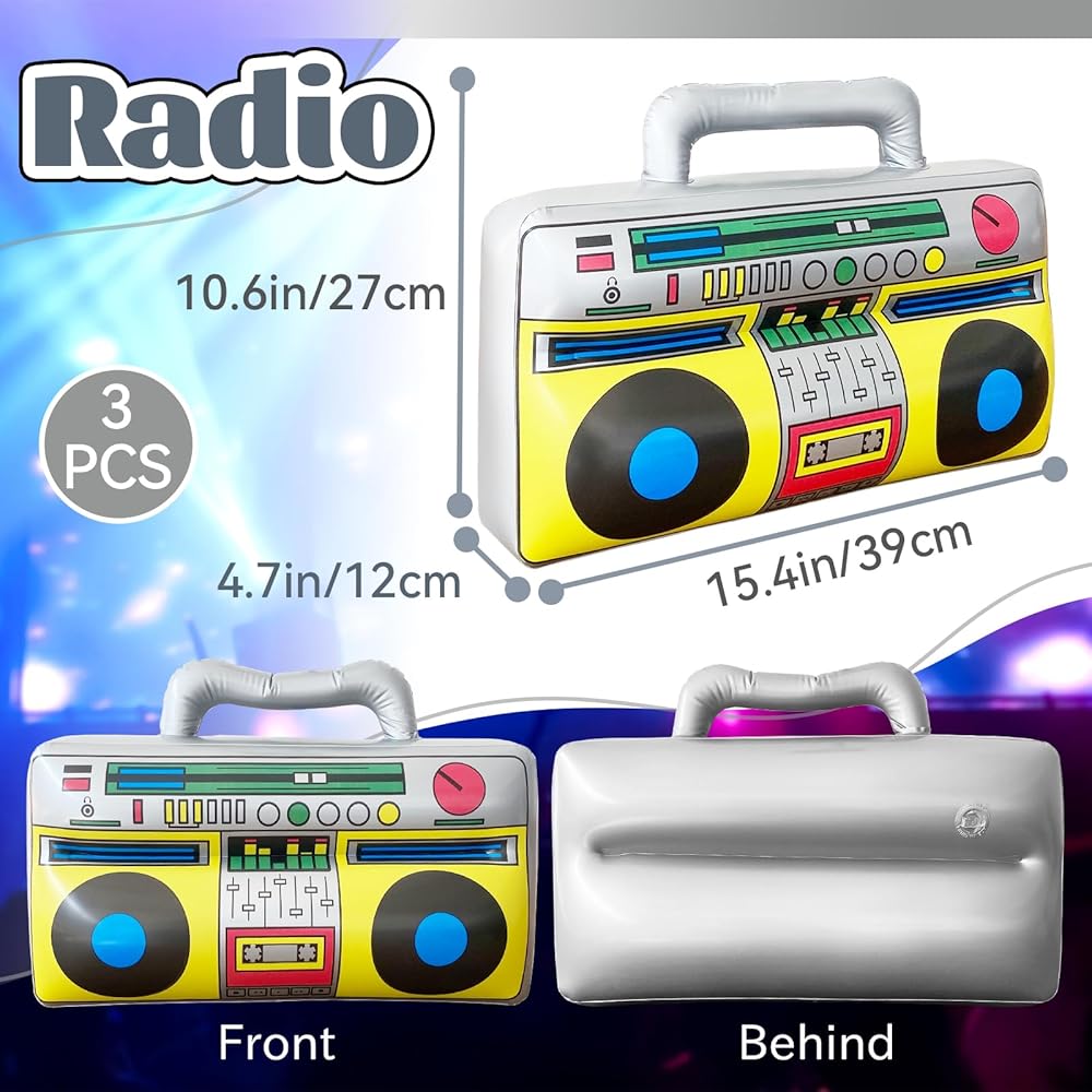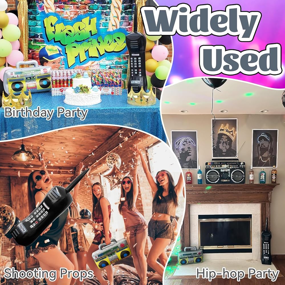 Package Including:3 pcs inflatable radio boomboxes and 2 pcs inflatable mobile phones.