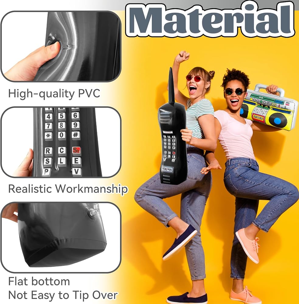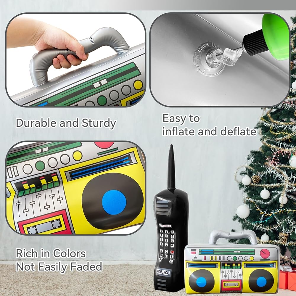 • 【Package Include】:The package includes 3 pcs inflatable radio boomboxes and 2 pcs inflatable mobile phones,which is a great combination to meet your decoration needs for vintage parties in the 1980s and 1990s.