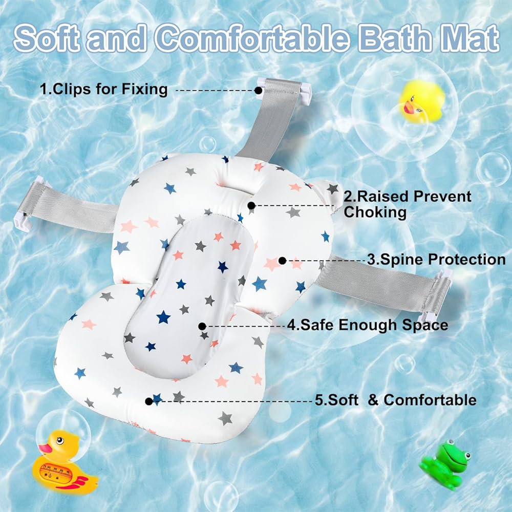 • 🛀【وسادة ناعمة】يوفر حوض استحمام الأطفال الخاص بنا وسادة مريحة وقابلة للفصل يمكنها حماية رأس الطفل من الصدمات لتمكين سلامة الاستحمام. الوسادة الناعمة التي تطفو على الماء ويمكن غسلها في الغسالة ستوفر تجربة استحمام مريحة وممتعة لطفلك.