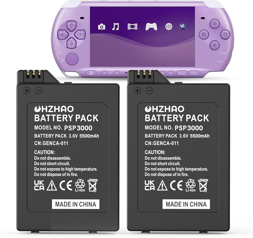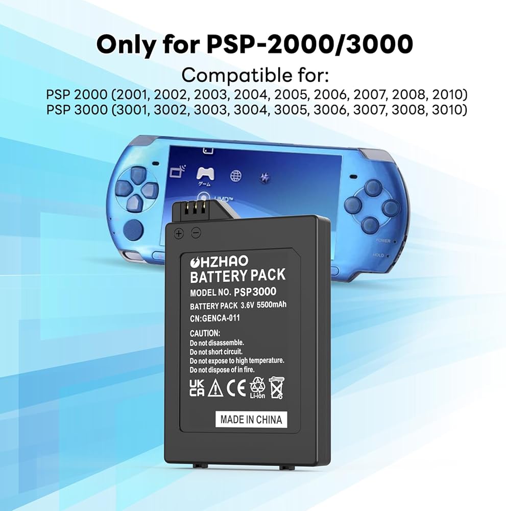 2 حزمة بطارية PSP 3000 قابلة لإعادة الشحن بقدرة 5500 مللي أمبير في الساعة، 2024 ترقية جديدة لبطارية 3.6 فولت عالية السعة لوحدة التحكم PSP 3000 / PSP Slim 2000 PSP-S110، PSP-2001، PSP-3000، PSP-3001 PSP Slim Console إلخ