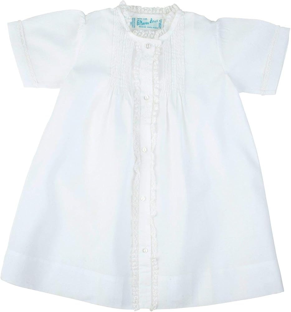 Your little princess deserves only the best - that's why we've designed this beautiful, vintage styled day gown, with her in mind! The gown features fluted lace trim around the neck, sleeves, and button placket, as well as hand stitched pintucks and floral embroidery. Comes beautifully folded and packaged, making it the perfect heirloom gift for all your loved ones!