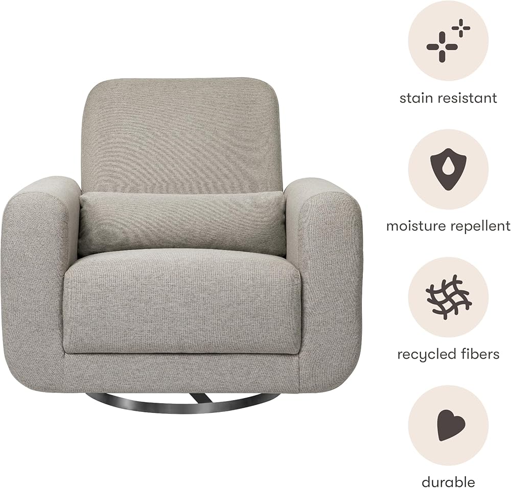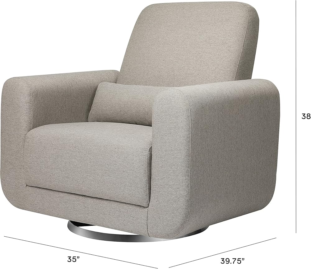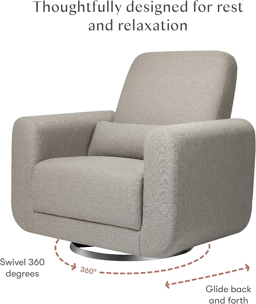 SPACIOUS SWIVEL GLIDER: Extra-wide 26" seat for superior comfort, roomy enough for nursing twins or sharing for storytime. Relax with a full 360° swivel and glide light wood base and included lumbar pillow for extra support.