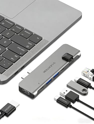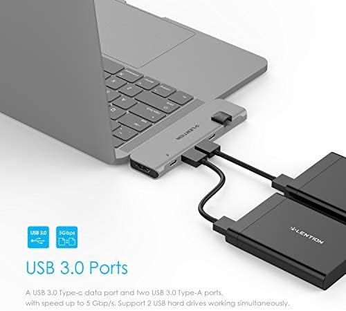 • [LENTION Dual USB C Hub]: 1*Thunderbolt (100W PD+ 40Gbps data Port+5K Video Output), 1*4K HDMI, 2*USB 3.0, 1*5Gbps Type C Port (Not for charging) and 1*1000Mbps Gigabit Ethernet Port (Note: Doesn't fit if there is a case on your Mac. Not for Superdrive)