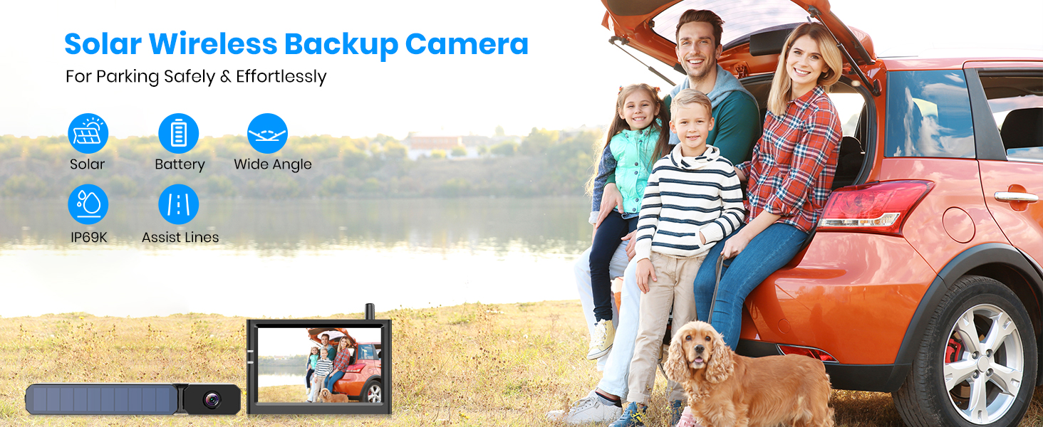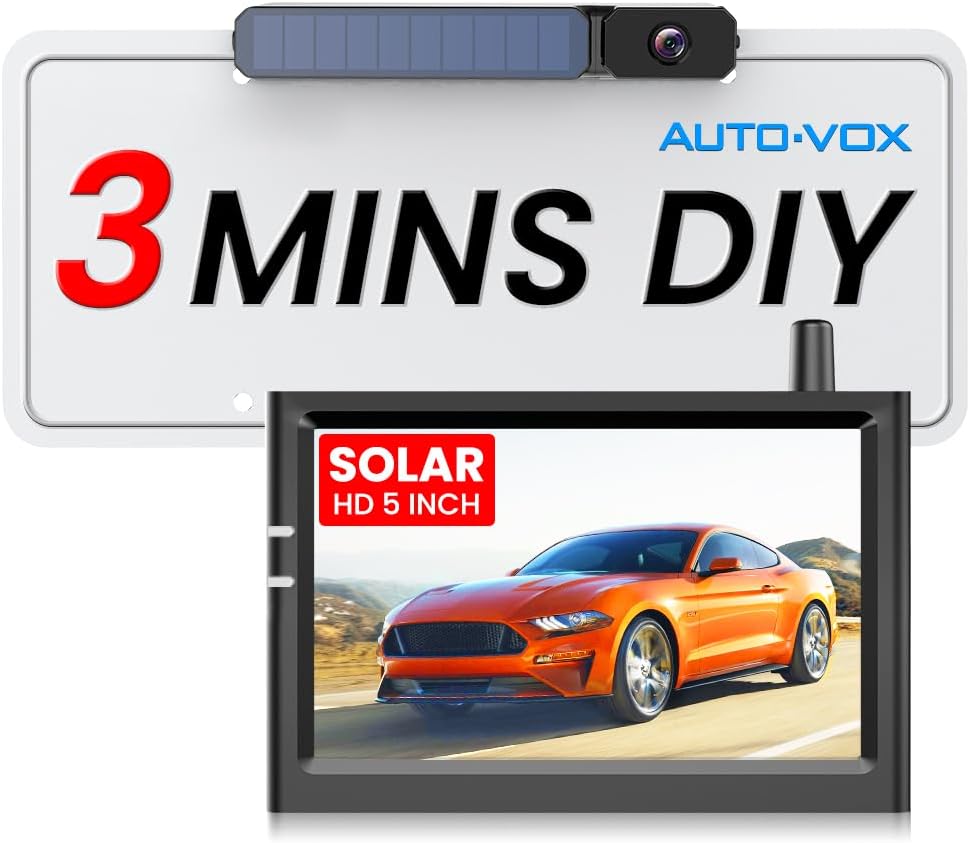 كاميرا احتياطية لاسلكية تعمل بالطاقة الشمسية من AUTO-VOX مع شاشة عالية الدقة مقاس 5 بوصات، تركيب يدوي لمدة 3 دقائق وأنظمة كاميرا احتياطية تعمل بالبطارية، كاميرا عكسية مقاومة للماء IP69K للسيارة والشاحنة وسيارات الدفع الرباعي وشاحنة صغيرة ومقطورة