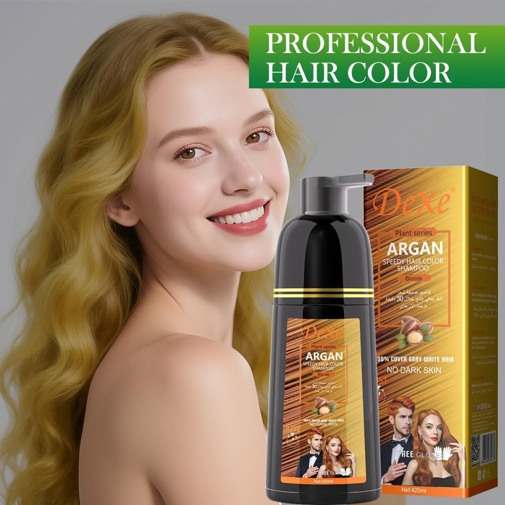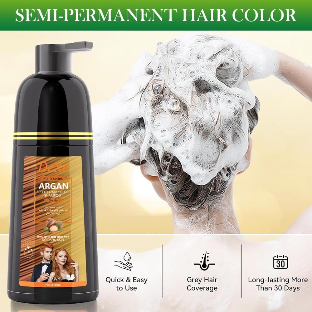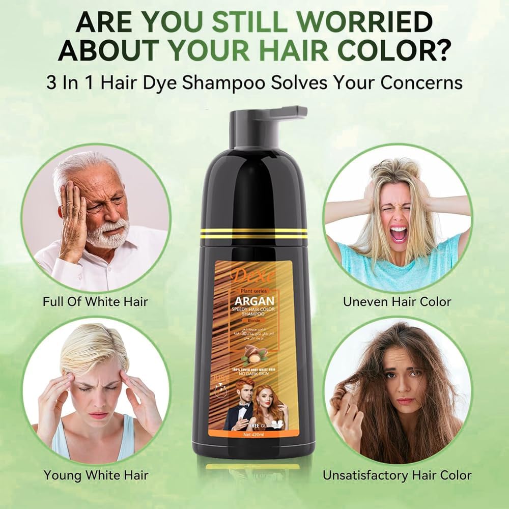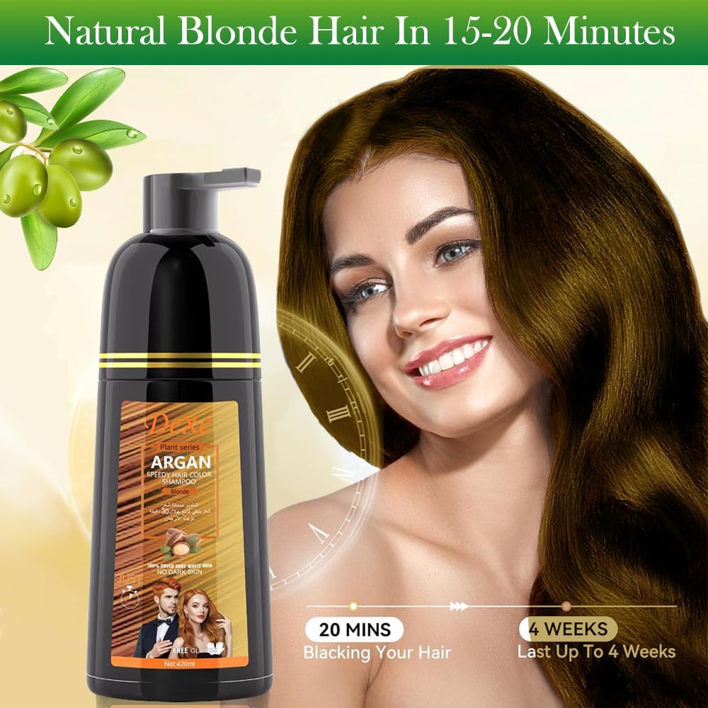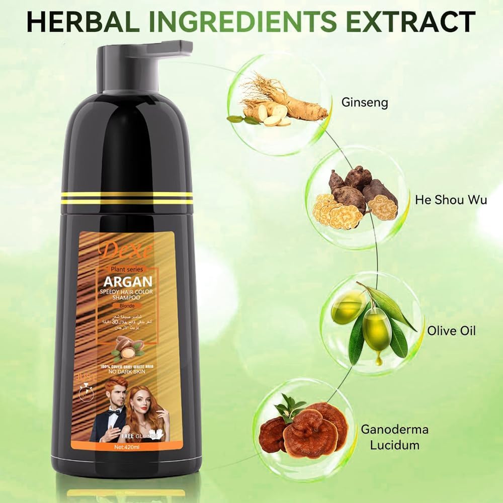 شامبو صبغ الشعر الأسود الفوري لتغطية الشعر الرمادي، شامبو لون الشعر للرجال/النساء، 3 في 1-100% غطاء رمادي، شامبو شعر دائم، مكونات عشبية وخالية من الأمونيا، 420 مل (أشقر)