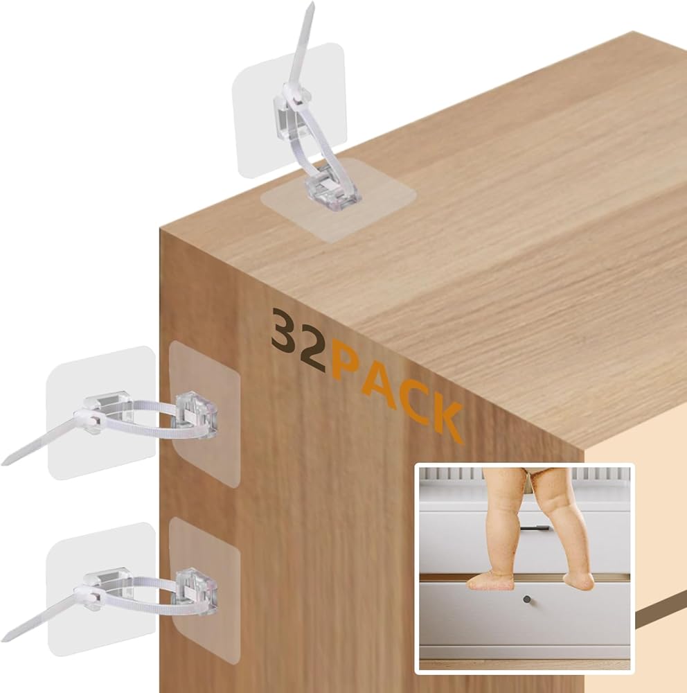 Chris.W 32 Pack Furniture Anchors, No Drill Upgraded Furniture Straps for Baby Proofing, Self-Adhesive Secure Furniture Prevent Falling Anti Tip Earthquake Straps for Child Safety