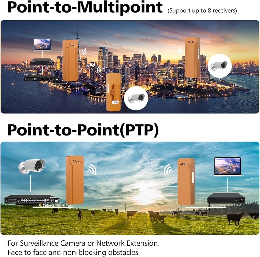 • 【جسر لاسلكي موثوق به ويوفر أموالك】يمكن تركيب جسور WiFi على عمود أو مثبتة على الحائط. توفر الجسور اللاسلكية من نقطة إلى عدة نقاط طريقة أكثر اقتصادا من مد الكابلات أو استئجار خط خاص. لا يحتكر المستخدمون القنوات، بل يتشاركون رابط اتصال واحد. يتم استخدامه لتوصيل كاميرات CCTV والمباني وأجهزة الاستشعار واتصالات WAN الخاصة بالشركات والوصول إلى الإنترنت، أبراج الاتصالات، أو أي شيء آخر يتطلب اتصال البيانات.