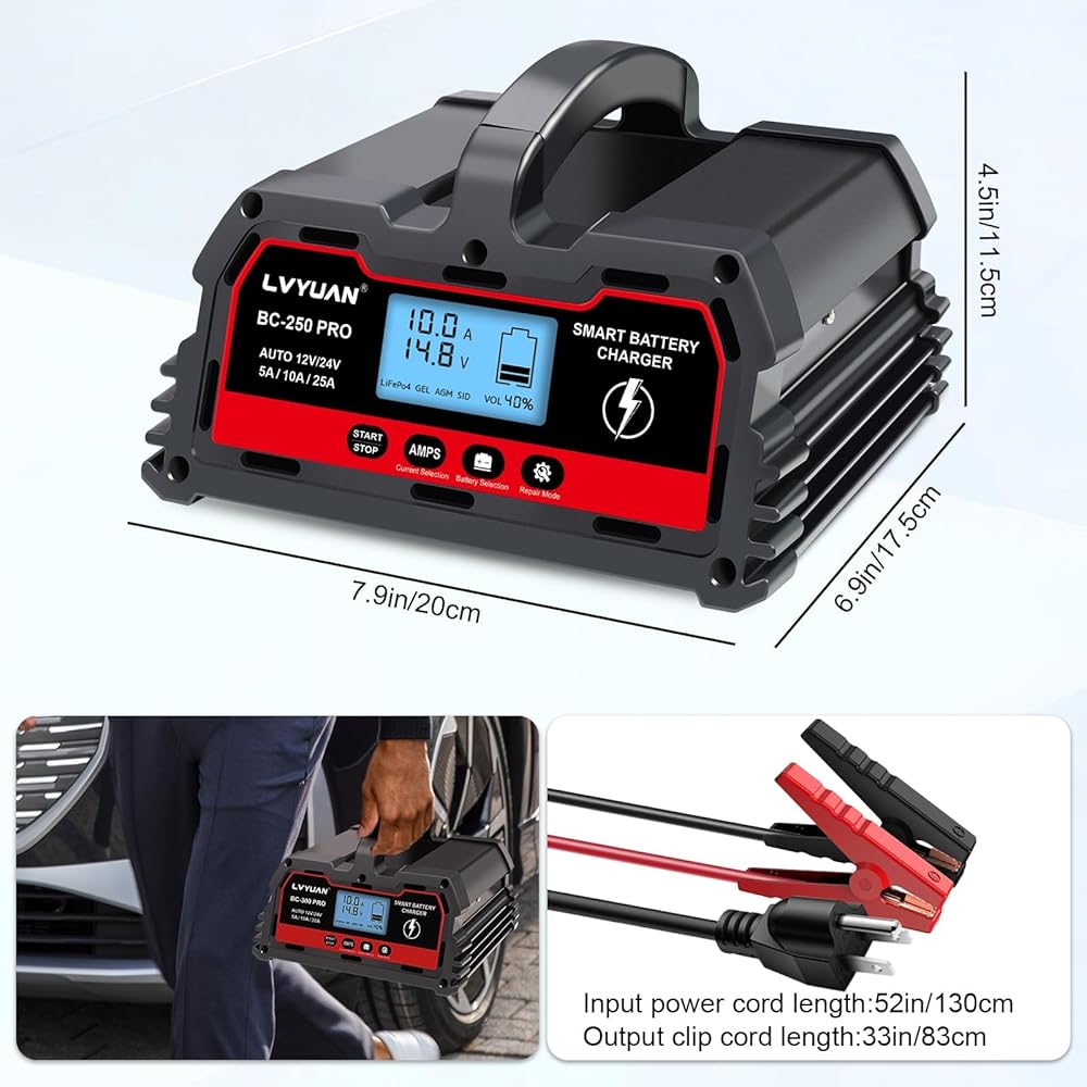 𝑷𝒍𝒖𝒈 & 𝑷𝒍𝒂𝒚: لا توجد خطوات معقدة، ما عليك سوى التوصيل والشحن والبقاء في المنزل وشحن البطاريات بنفسك. يمكن استخدامها لشحن البطارية، وصيانة البطارية، والشحن المتدرج وإزالة الكبريت من البطارية، وهو حل الكل في واحد للبطارية، وهو أداة ضرورية لامتلاك سيارة