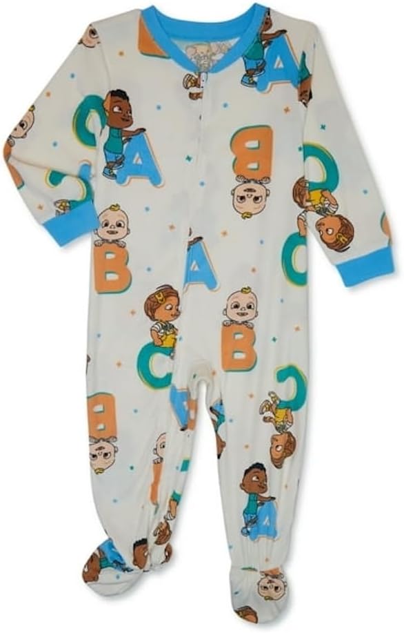 بيجامة CoComelon للأطفال الصغار للجنسين قطعة واحدة بسحاب للقدم (مقاس 5T) باللون الأبيض