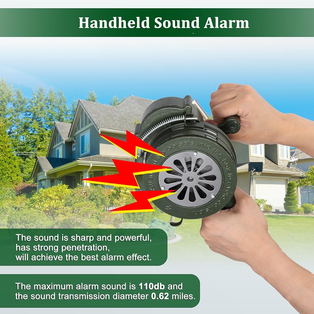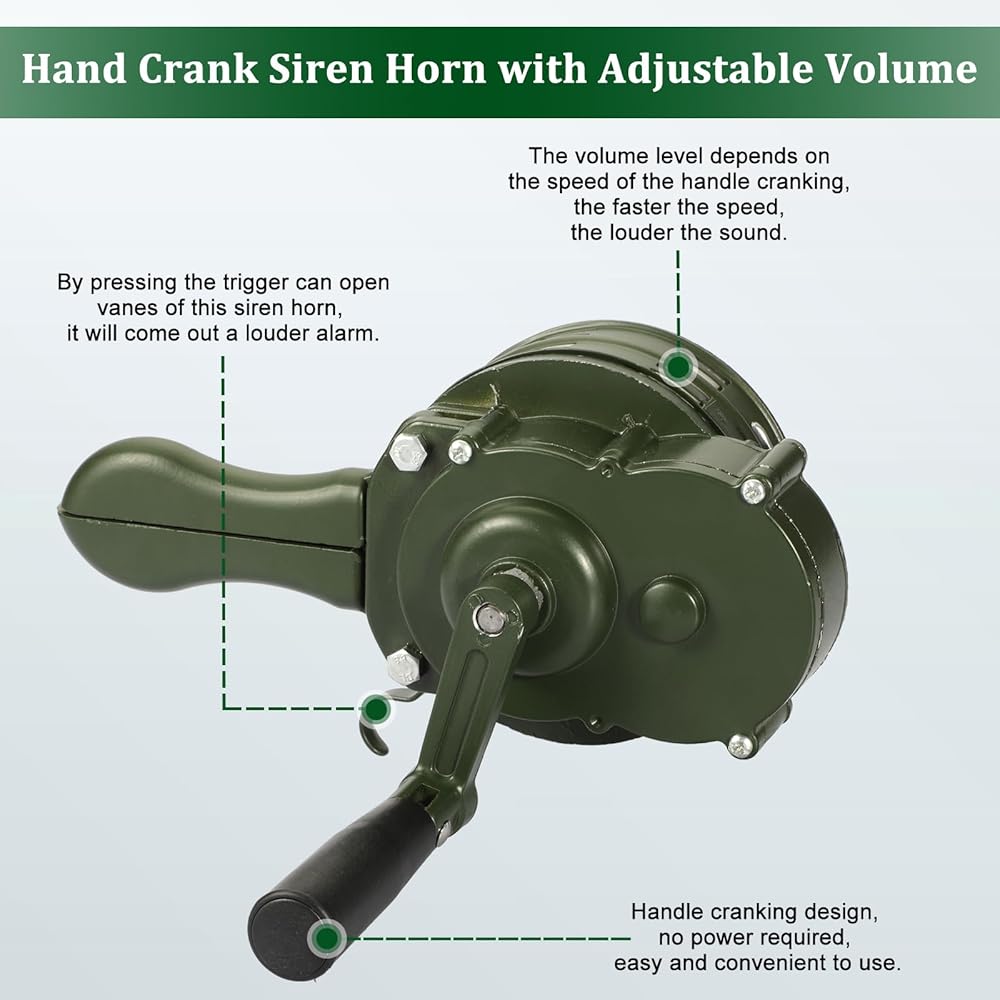 لا يتطلب دعم الطاقة: سهل ومريح لاستخدام صفارات الإنذار الجوية هذه من خلال تدوير المقبض يدويًا فقط، ولا حاجة إلى طاقة خارجية إضافية أو دعم آخر للمعدات، مصمم بدون دعم للطاقة أو حالات غير متوقعة من إنذارات الطوارئ.