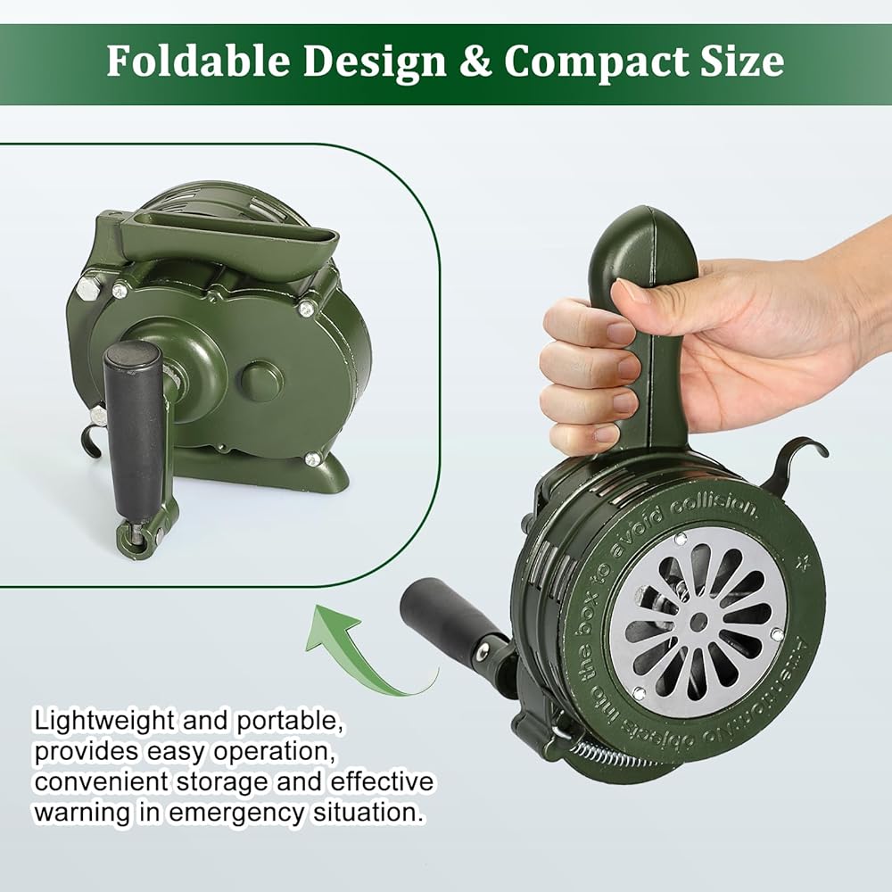 OWNMY اليد كرنك صفارة الإنذار القرن دليل تشغيل الهواء صفارة الإنذار المحمولة صفارة الإنذار تورنادو، صفارة الإنذار المعدنية القابلة للطي للأحداث الرياضية حفر النار صفارة الإنذار القرن المحمولة الطوارئ صفارة الإنذار بصوت عال إنذار
