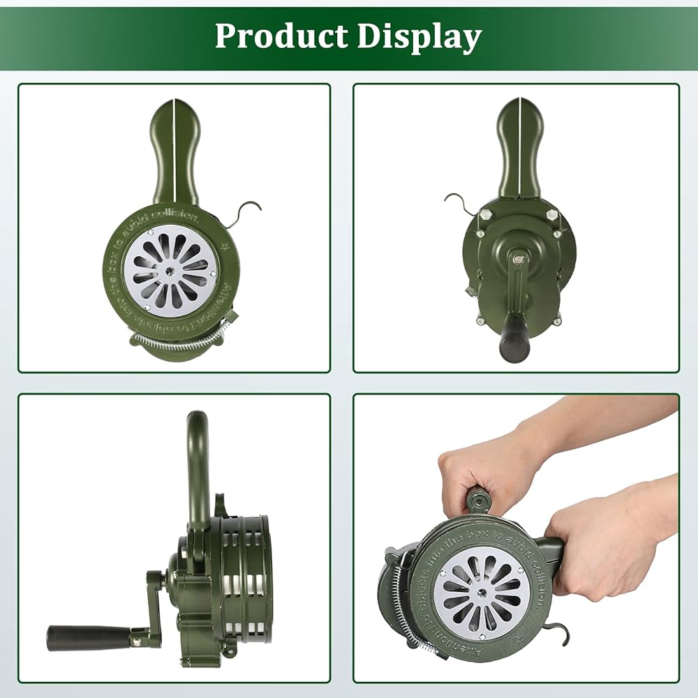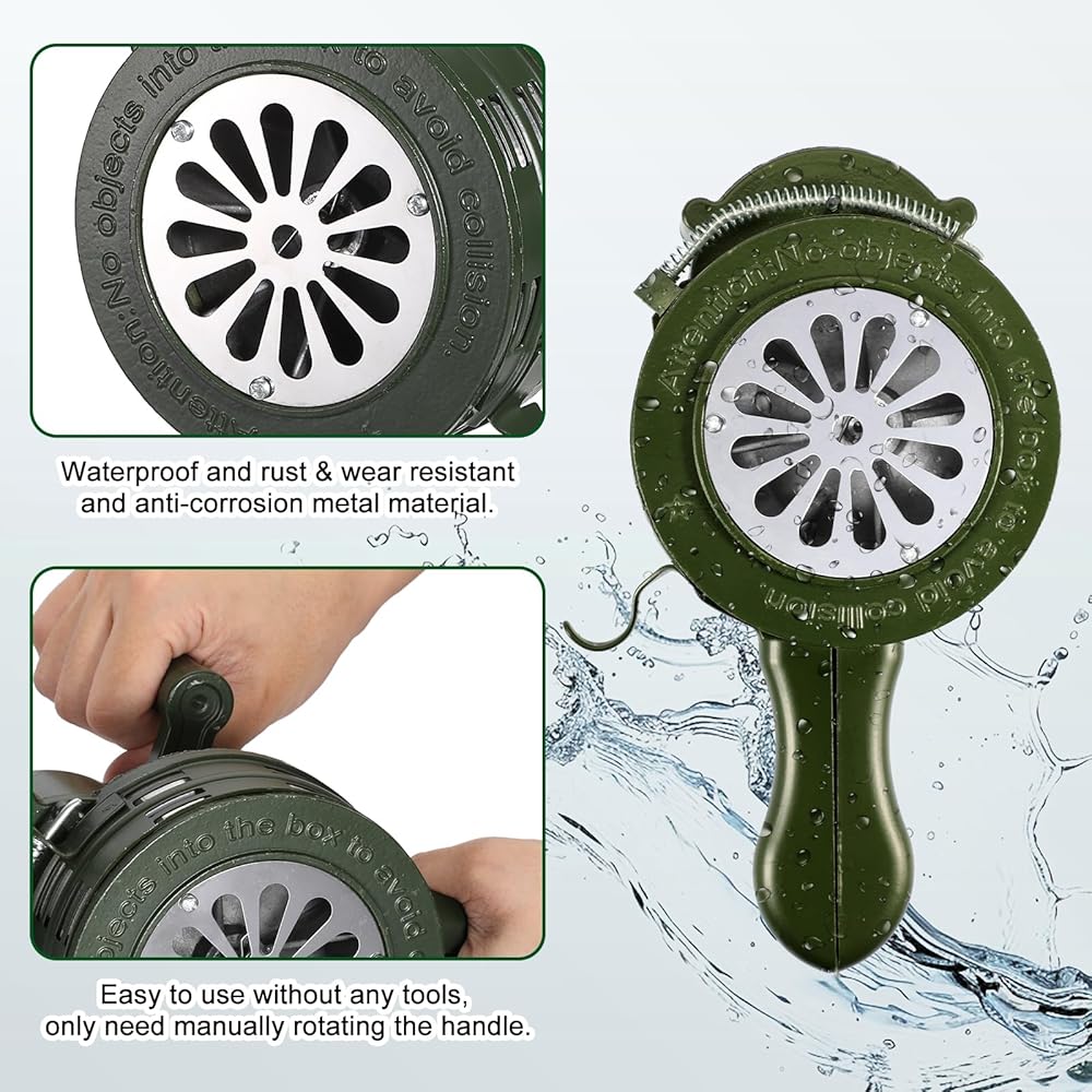 حجم قابل للتعديل: يعتمد مستوى صوت صفارة الإنذار على سرعة تحريك المقبض، وكلما كانت السرعة أسرع، كان الصوت أعلى؛ يمكنك أيضًا الضغط على الزناد الإضافي المحمّل بنابض لفتح الريش لجعله يصدر إنذارًا أعلى.