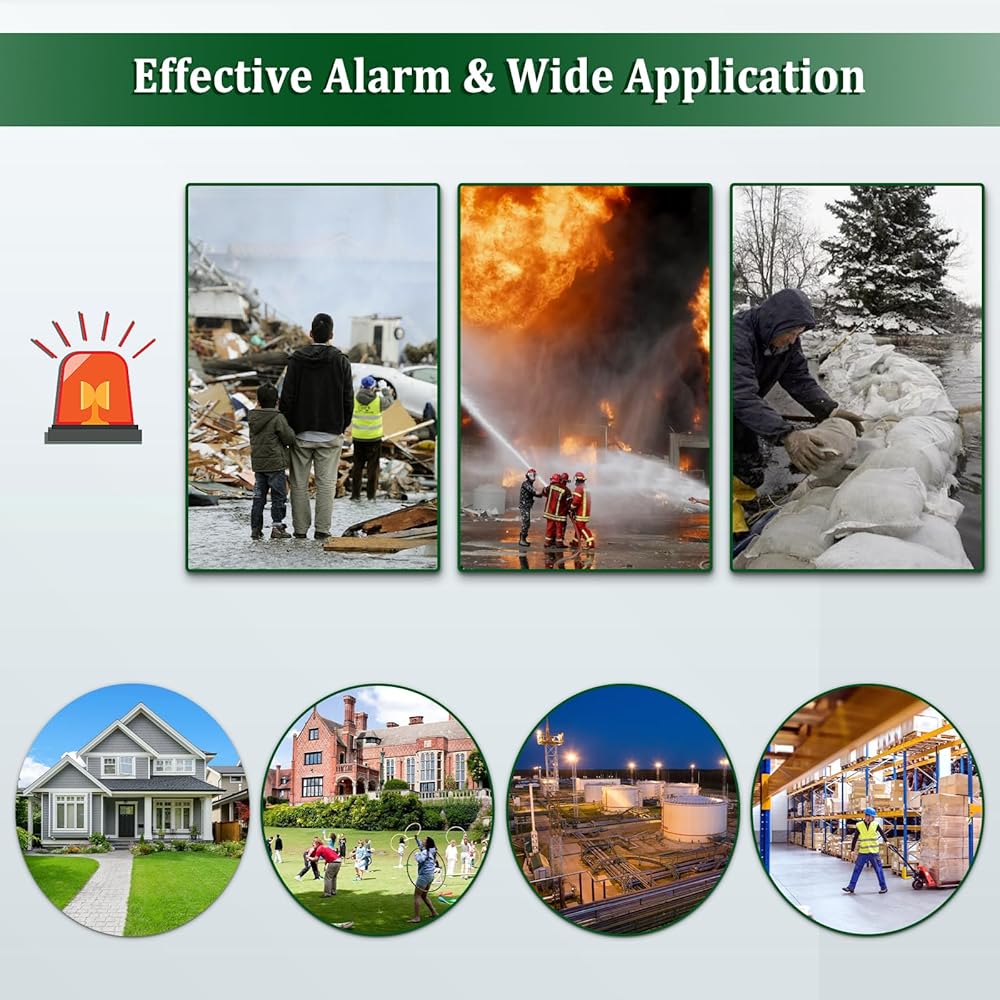 تطبيق واسع: لا يمكن استخدام صفارة الإنذار اليدوية هذه فقط للتحذيرات الصوتية العالية، والاحتفالات، والأحداث الرياضية، وتدريبات الحريق، والمخيمات الصيفية، ومسرحيات عرض الألعاب، ولكن أيضًا للتحكم في الفيضانات، والتخفيف من الكوارث، والإعصار، والحرائق، والعواصف الثلجية أو غيرها من حالات الطوارئ. ، مناسب للمصانع والمستودعات والمنازل والمدارس والنوادي ومستودعات النفط والمناسبات العامة والصناعية والمغامرات البرية ومناسبات حوادث المرور، ويساعد على الإنذار في الوقت المناسب لتقليل الإصابات وخسائر الممتلكات.