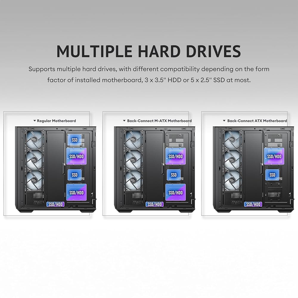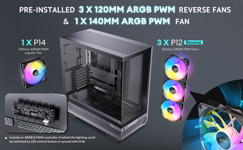Pre-Installed 3 x 120 ARGB PWM Reverse Fans on right side & 1 x 140 ARGB PWM Fan at the Rear.