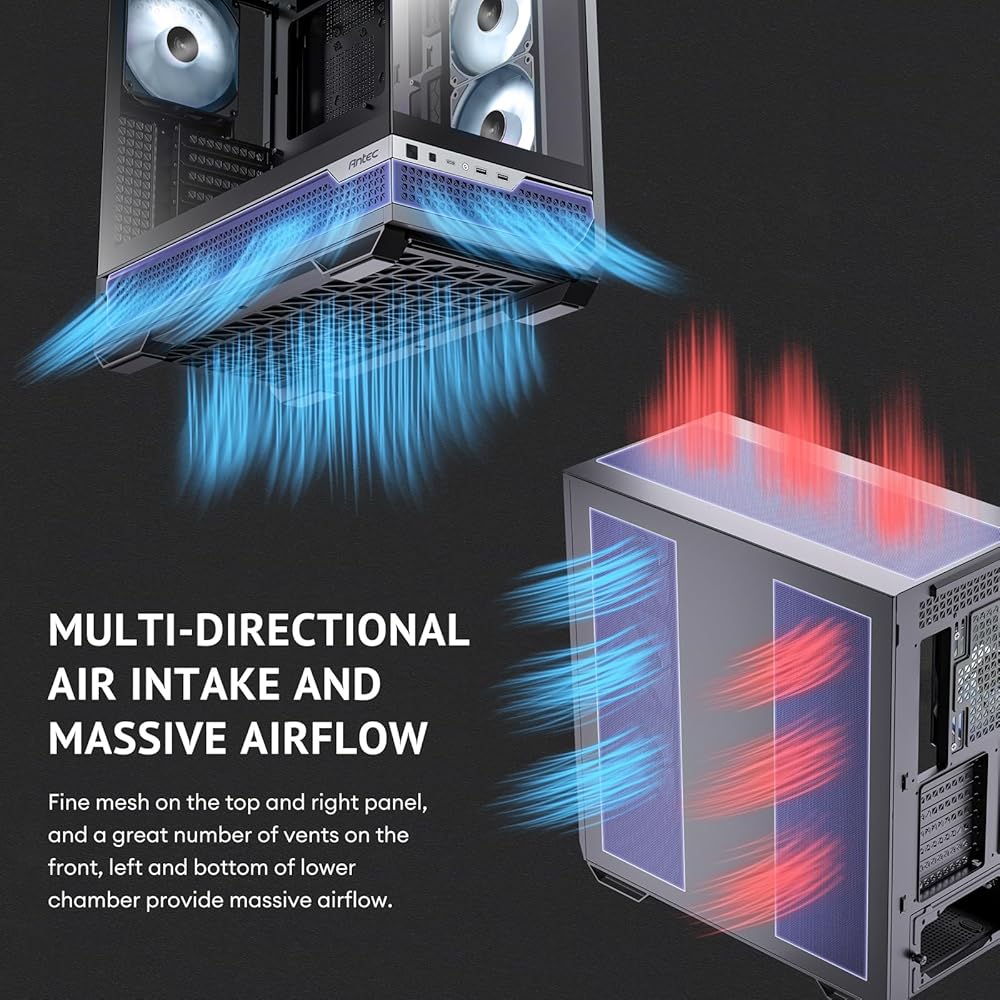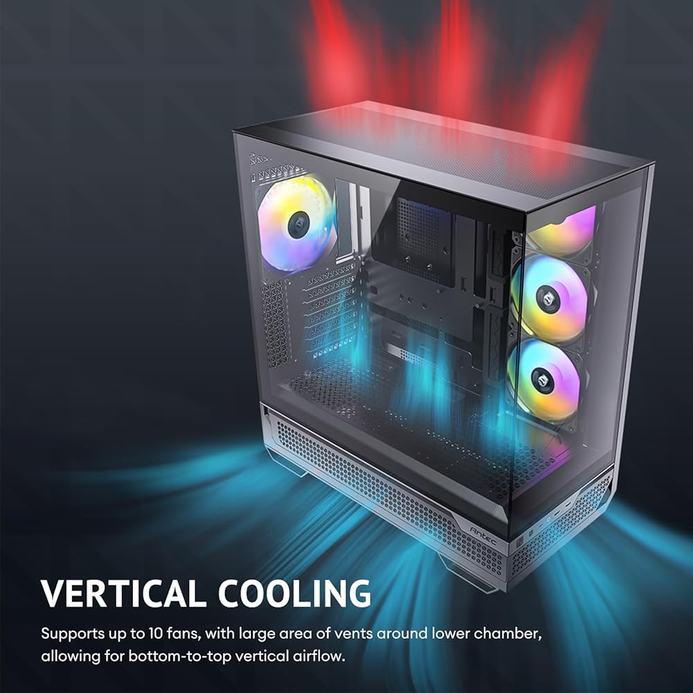 Vertical Cooling: Can Accommodates 3 x 120mm Fans on Top and PSU shroud Each, and 1 x 140mm Fan at the Rear.