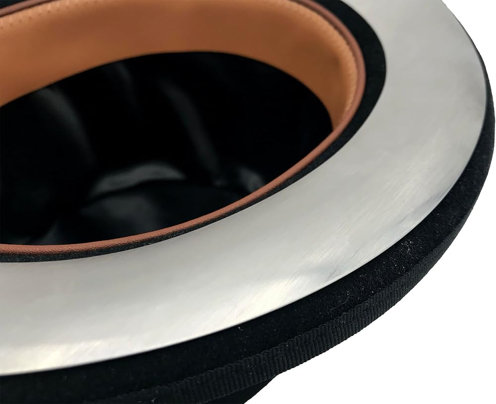 The Factory Entertainment Oddjob Hat prop replica was created after careful study of the remaining original SFX hat with the embedded rim in the EON Productions archives, as well as reference photographs and original production drawings. The original archive hat was hand-measured, and a 3D model was created from these measurements in order to create wooden molds, or 'forms' that were then used to press and stretch woolen felt into the correct shapes. Historically, bowler hats were designed to afford some protection to the heads of gamekeepers, so they were made from thick durable material. The Factory Entertainment team duplicated this, commissioning a special ultra-heavyweight felt material that is even tougher than its 1960's forebears. The metal rims of the original props would only have needed to adhere to the hats for short takes. The Factory Entertainment team wanted their replica to last a long time, and after experimenting with many different options and prototypes, the team developed a method that includes both mechanical and chemical bonding to invisibly and permanently fix the two different materials together. Each replica includes a museum-style mirrored display base with an acrylic cover, specially designed magnetic supports and an individually numbered metal plaque bearing the unique edition number of each piece and a COA (certificate of authenticity) booklet. WITH STAND & COVER: W13.25xD13.25H11.25" (34x34x27.5cm) || HAT ONLY: W12xD11xH5.5" (30x27x15mm)