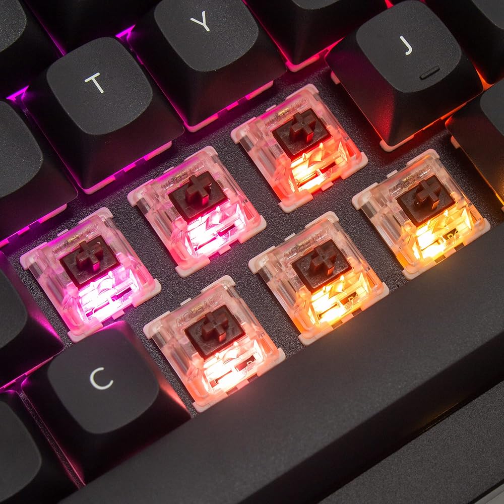 دعم قابل للتبديل السريع: مع المفتاح الأحمر الخطي الميكانيكي Gateron G Pro الذي يوفر استجابة لمسية لا مثيل لها مع عمر يصل إلى 50 مليون ضغطة مفتاح. يمكنك أيضًا تبديل Q1 مع جميع المفاتيح الميكانيكية 3pin و5pin MX الموجودة في السوق تقريبًا (بما في ذلك Cherry وGateron وKailh وPanda وما إلى ذلك) دون الحاجة إلى لحام. تم تصميم المثبت اللولبي المثبت على PCB لـ "المفاتيح الكبيرة" مثل شريط المسافة والتحويل والإدخال والحذف لتقليل التذبذب.