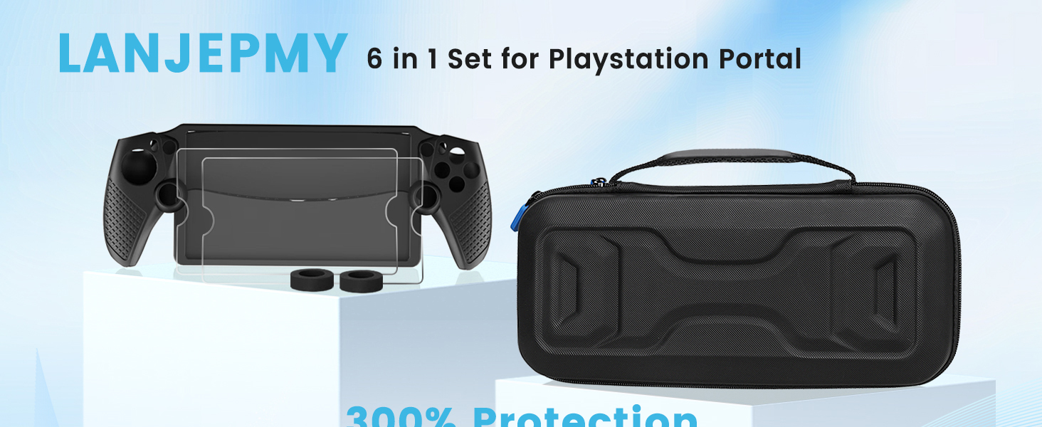 حزمة الملحقات لبوابة PS - مجموعة الملحقات 6 في 1 الخاصة بنا مصممة خصيصًا لبوابة Playstation الخاصة بك مع حقيبة حمل صلبة لسهولة التخزين والسفر. يضمن الغطاء الواقي المصنوع من السيليكون وواقي الشاشة الزجاجي الحماية الشاملة. تشتمل الحزمة على حقيبة حمل للسفر*1، غطاء واقٍ من السيليكون*1، واقي شاشة*2، حلقات دقيقة*2