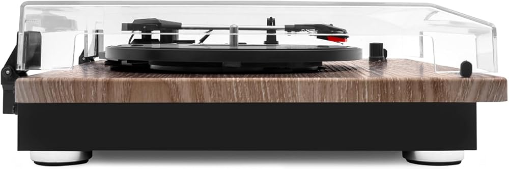 PREMIUM AESTHETICS AND FUNCTIONALITY - The warm wood finish of this Bluetooth record player, along with its sleek design and clear acrylic dust cover gives it a timelessly classic look that goes with any entertainment setup and your home aesthetic